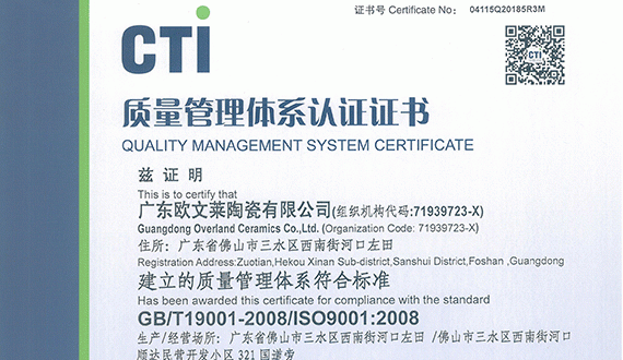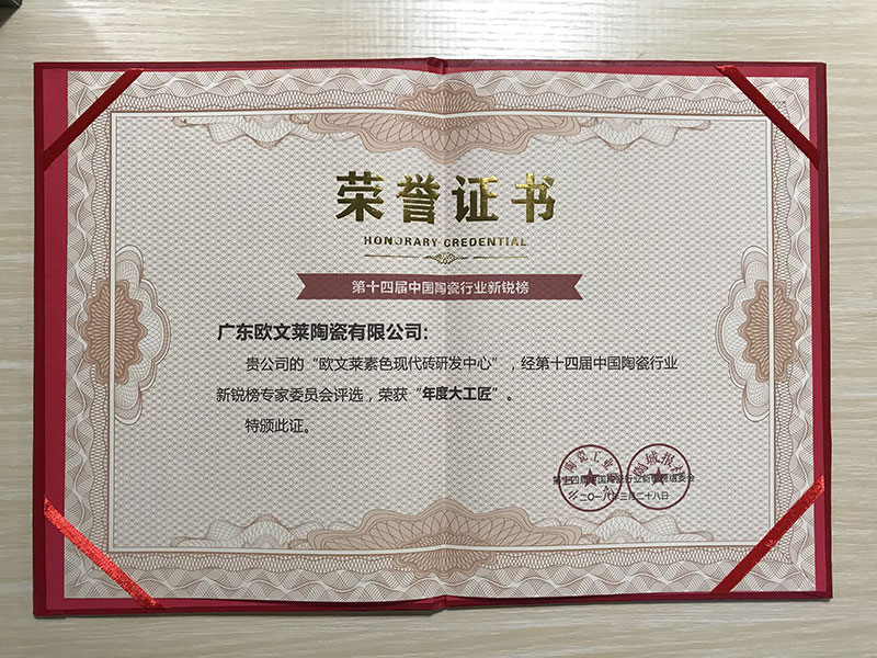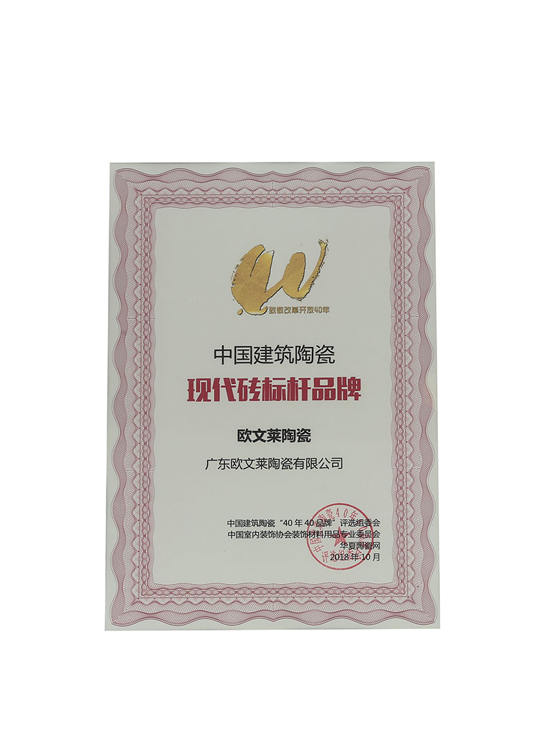 欧文莱执行国际高端制造标准,建立国际化、智能化、专业化的瓷砖生产线,精准控制瓷砖的品质出品。欧文莱与意大利顶级设计研发机构建立长期战略合作,凭借先进制造技术和自主研发能力,多项研发成果入选国家火炬计划。欧文莱享有SGS、NSF、GREENGUARD等国际权威认证,代表欧文莱的产品环保、品质受到国际认可,是极少数三证齐全的中国品牌。