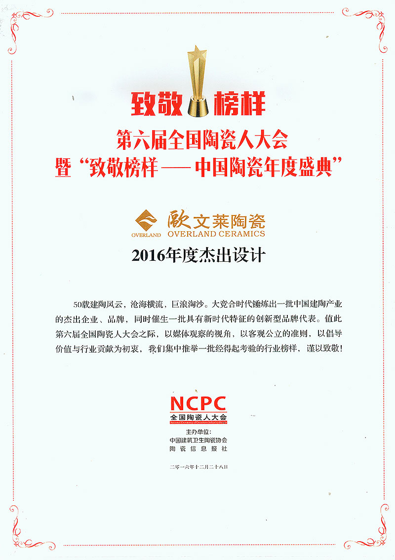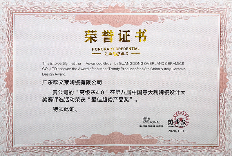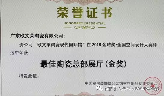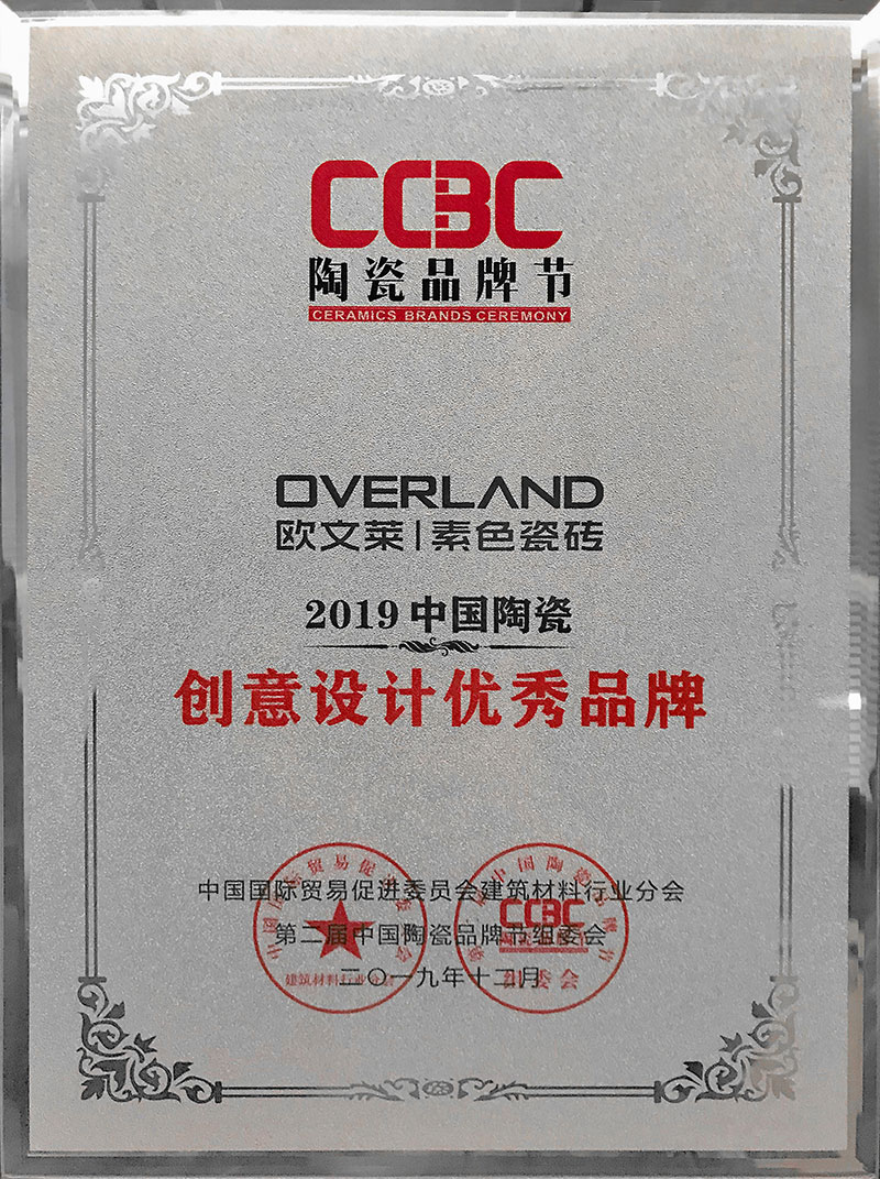 欧文莱作为中国瓷砖品牌,坚守原创设计,坚持产品持续创新,持续推动民族品牌的国际化进程。2018年以来,欧文莱是代表中国参加意大利博洛尼亚展CERSAIE的素色瓷砖品牌;2020年,欧文莱成为入选央视《崛起中国》栏目的高端瓷砖品牌,代表中国创造先进水平与特邀主持人水均益高端对话。