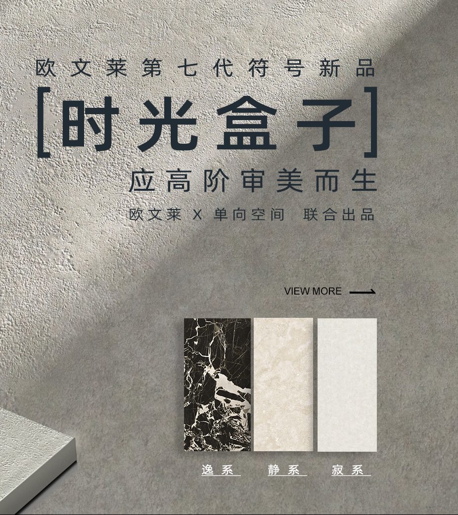 欧文莱推出瓷砖高级灰的标准,创建了一套用于瓷砖研发的灰度理论,以数据量化的方式分析出设计与生产中色彩灰调的深浅冷暖,指导产品研发制造。从“欧文莱灰”、“灰印象”、“量子灰”、“高级灰4.0”、“触感5系”、“清新系”到“时光盒子”,“大地主义,“人文主义”,欧文莱符号产品已迭代创新至第九代,向挖掘消费者潜在需求不断深化。