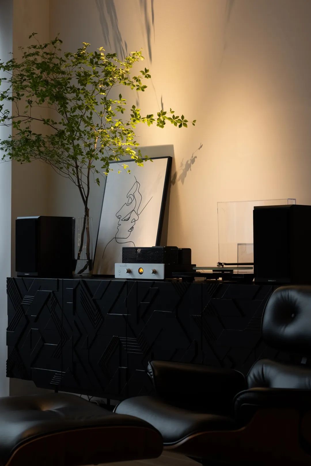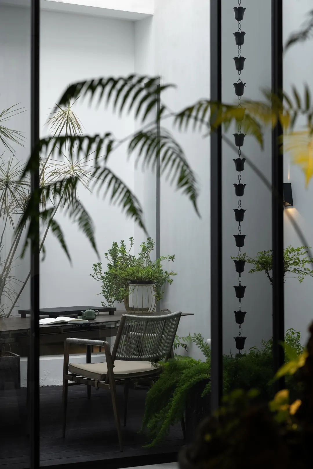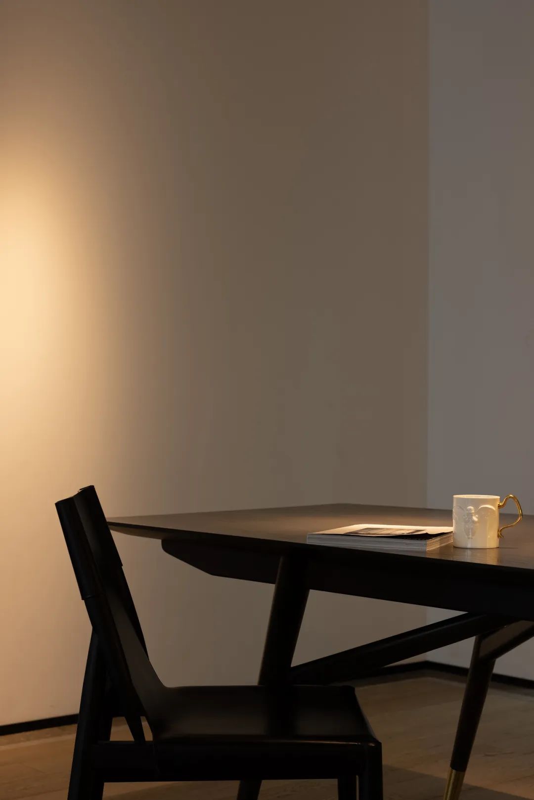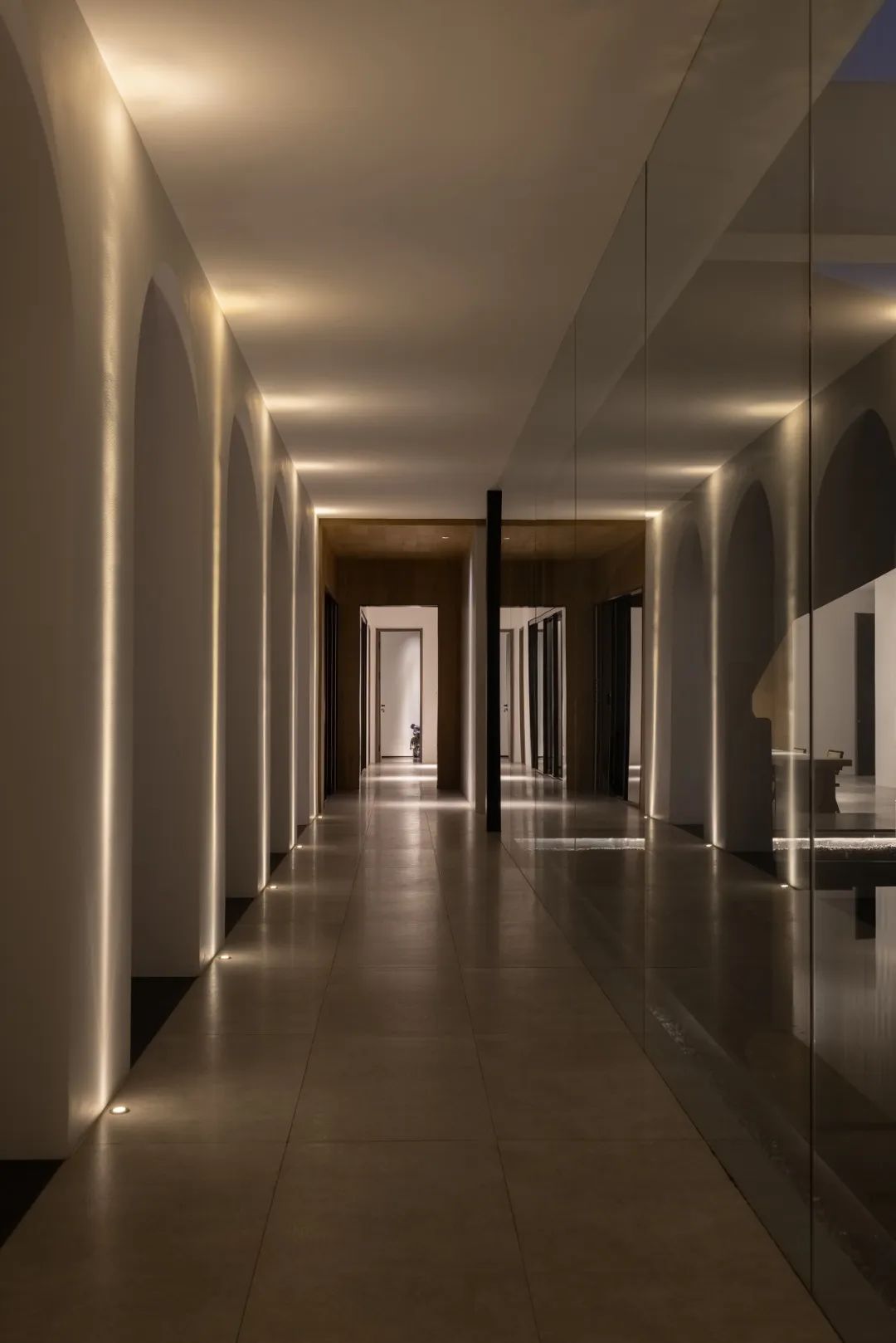与很多公司传统的进门设计不同,整个空间的设计是随性的,去前台化的,没有太多的条条框框,让思路自然打开。设计师表示,首先穿过画廊,抵达区间前的路途,采用了先抑后扬的手法。这样一个相对安静的空间,是经由身体至心理的前奏铺垫,在过程中去欣赏和了解新成对设计的理解,然后穿透到一个打开的状态,豁然开朗,像桃花源记一样。陶渊明的《桃花源记》,借武陵渔人行踪这一线索,把现实和理想境界联系起来,为世人创造了一个世外桃源的想象。芳草鲜美,落英缤纷,阡陌交通,鸡犬相闻。快节奏的现代社会生活,每个人都急匆匆的在往前奔忙,驻足美景、流连趣事越来越成为人们生活里不可或缺的精神养分。时至今日,桃花源的意义不只是一个标签性很强的概念、一个理想化的图腾,寻找桃花源,寻找的,是在快节奏生活状态下,一个暂得喘息的理想出口,是理想生活的肇始与初心。一缕清风,几片闲云,还有绿植散发出的大自然清冽悠香,颇有一种“久在樊笼里,复得返自然”的豁然。沿着廊道向前走,艺术画作的设置让空间处于一种悬浮状态,既简单又不呆板,一些盒子状的穿插结构,拾级而上,感觉更灵活灵动。视线中的艺术楼梯,拾级而上,则可抵达二层的园林。存在于整个空间当中,它像一件艺术品,亦给人以上下的尺度感。铺设廊道的是欧文莱“灰印象”系列瓷砖(点击跳转介绍),在光线映衬下展现出丰富的层次感和自然肌纹,化繁为简,以刚驭柔,为整个场所平添几分气度与生命力度。“灰印象”还原自然石材的质感状态,肌肤与砖之间的温润度,更好还原设计理念的简约肌理,亦成为了它被青睐与选择的原因。“素色能融入到整个空间里面来,能更好地表达设计作品本身,而不是砖本身。我们选择材质的时候用的是基本是素色和木色,因为想让自然的东西带到我们的生活中来。欧文莱的素色砖的特点就是质感非常好,和大自然能融为一体,给人以包容感。”“我们选择的砖以及设计空间的所有材质,它们未来都是一个整体,而不是某一个单独的东西跳脱出来,它不应该这样传递。‘灰印象’表面凹凸的小肌理,像极了雨后小路,它更好地把外面的水景和自然融合到了一起。”夕阳渐昏的光线将整个空间包裹,华灯初上,氛围阔朗而静谧。“好的设计没有太多的形式化,欧文莱(素色砖)的灰度可以让我们在不同空间,不同场景去表达不同的光感感受,阴影感受,以及光和空间怎么做一个更好的结合,生动的状态。”四边廊道围合出一方天地,设计师将中国传统四合院和古罗马斗兽场拱形元素等西化造型相结合,希望达到一种巧妙的衔接,产生一种东西方的融合之美。放眼可见,中古的金箔屏风、经典的昌迪加尔椅、当代的极简柜体等不同时期的元素进行和谐对话,具有人文色彩的素色瓷砖、时尚感的大理石及玻璃材质、石竹等元素的混搭,通过光线调教,构筑属于现代人的意象之居。作为接待室的空间,也作为平时朋友相聚的场所,融入了设计师对生活方式的理解。参考中国的四水归堂设计理念,空间布置得紧凑,而又自然连通。各个空间各具艺术感染力,在花叶漫漫中自成焦点,却又与周遭一切脉韵连贯,相得益彰。四季草木,郁郁葱葱,仿佛信手拈来的诗情画意,却对空间进行了巧妙而合理地划分,保证各部分独立性的同时去除疏离与突兀,使空间叙事具有连贯性及整体性。设计师希望,一切都是回归到自然里面的。整个空间材质以素色、木色为主色调,以框景手法,将自然之景引入空间之中,虚实结合,移步换景,借景造景,将室外和室内形成无缝的链接,营造一种回味悠长的意境之美。都市喧嚣隐匿在桃花源般的宁静和美中,此情此景,人与空间情感交融。啜饮谈天,偷得浮生半日闲,这是一种温和的、潜移默化的促成。每个区间有各自不同的尺度和性格,但殊途同归,可见的是设计师对空间设计的理解,以及在人文生活情境上的打磨。新成空间艺术成立于2007年,是一家专注于高端私宅设计研究与实践的事务所,致力于引领东方现代居住审美,平衡精致的美感与生活方式的魅力,提倡无风格设计。通过研究空间与人的关系与感受,构建当下人对空间的物质与精神的感受。