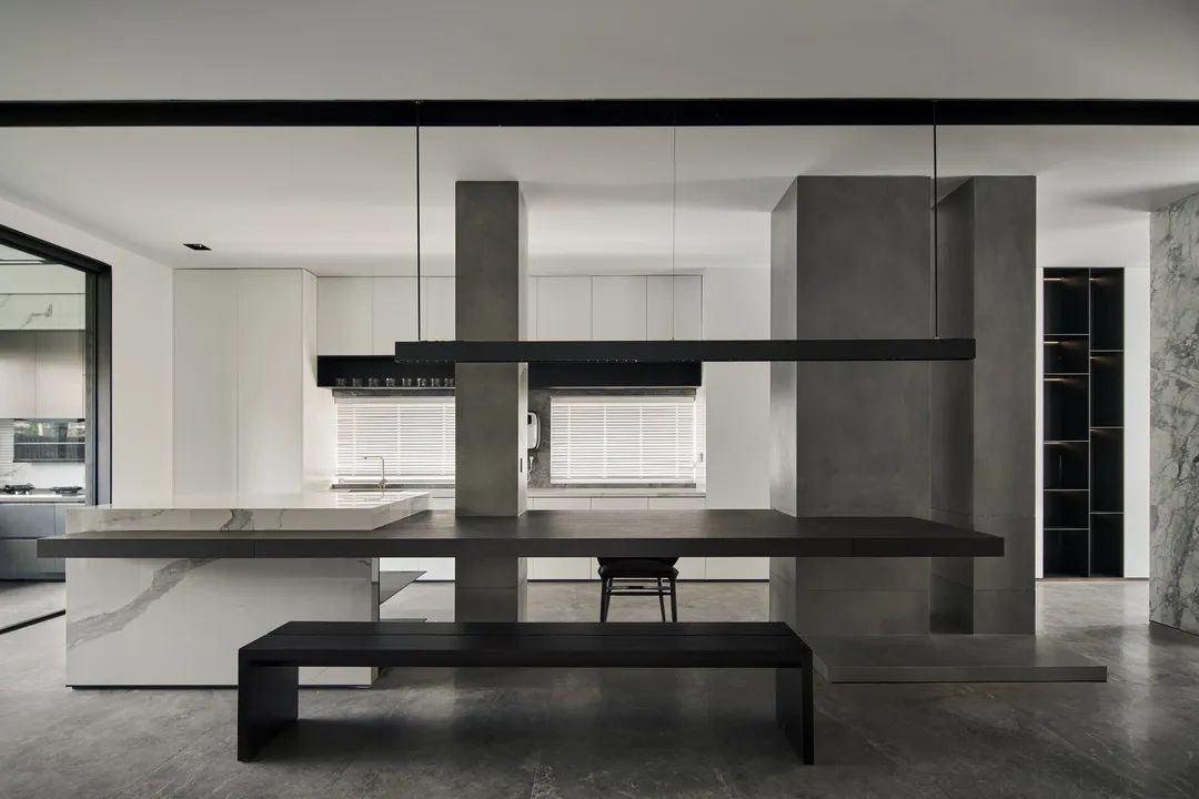黑白灰素色,是随着时间沉淀下来的恰到好处的温柔和宁静。这套680㎡的私宅,用稳重深层的雅致风格,兼具感性和理性的叙述表达,将空间的气质有条不紊地延展开来。