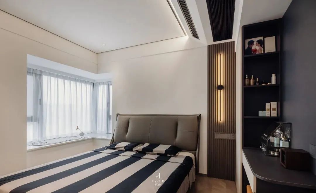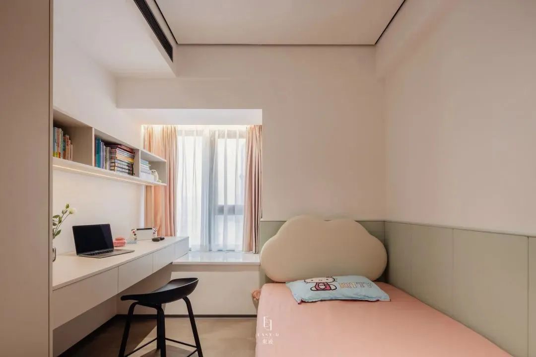 卧室的细节体现了现代风格的自然协调与轻松舒适。主卧主要是深与浅的呼应,令人感到优雅宁静的氛围气息;女儿房延续了简约的设计,但是又透露出整个空间当中的童真性,色调的统一,让整个空间变得更加梦幻。用最少的设计语言,给人无限的放松。灰色调精致内敛,看起来好像可以装得下各种情绪,有了细节与光线的衬托,整个空间变得更加干净、纯粹、无负担。本案最突出的设计亮点,是十分讲究空间的收纳与利用,灵活运用每一寸空间,引入浓郁的生活气息,满足不同的生活需求。