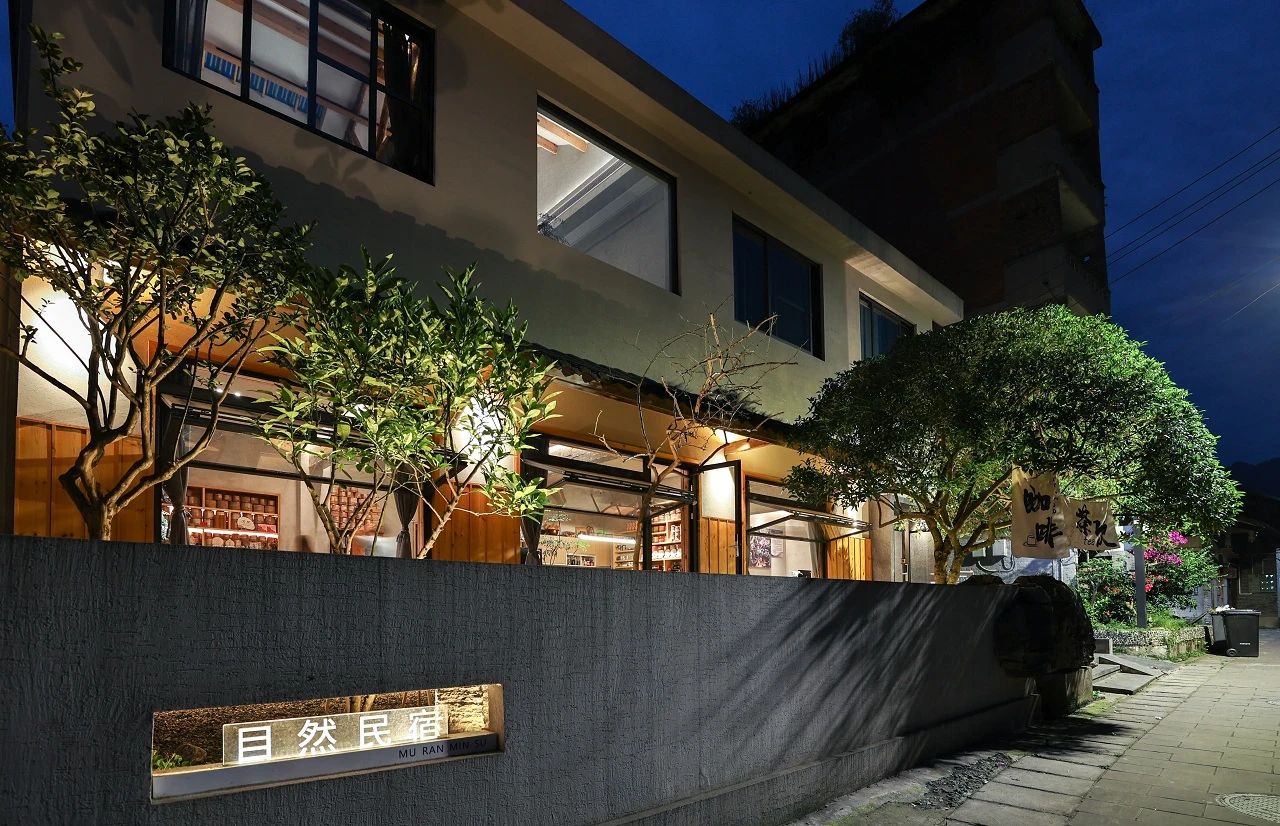 绿意风光融于室内,年岁光景在俯仰之间,通过日出与日落余晖,感受四时的更替。景致交叠,为民宿添置诗意,也以此沟通各个空间。