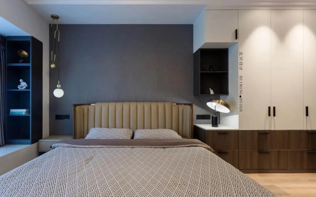主卧选用灰色做主色调,刚好与整个空间的色彩形成呼应。