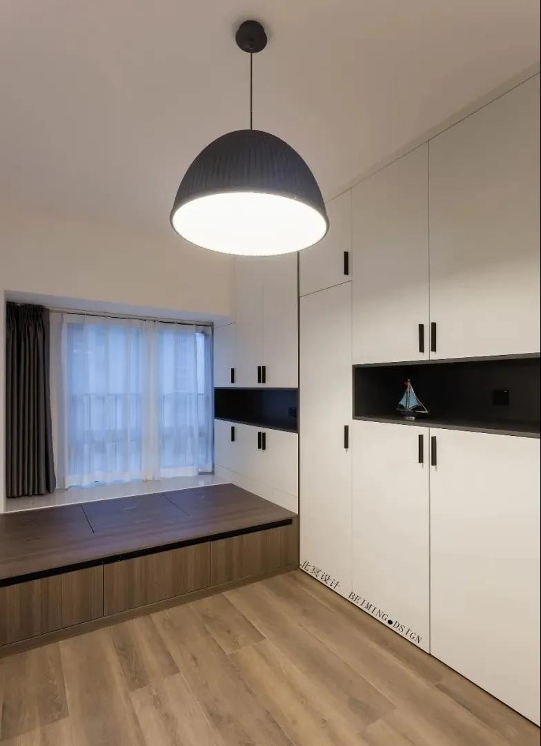 飘窗的墙面打造壁龛储物,多样的柜体提供更多的收纳空间。
