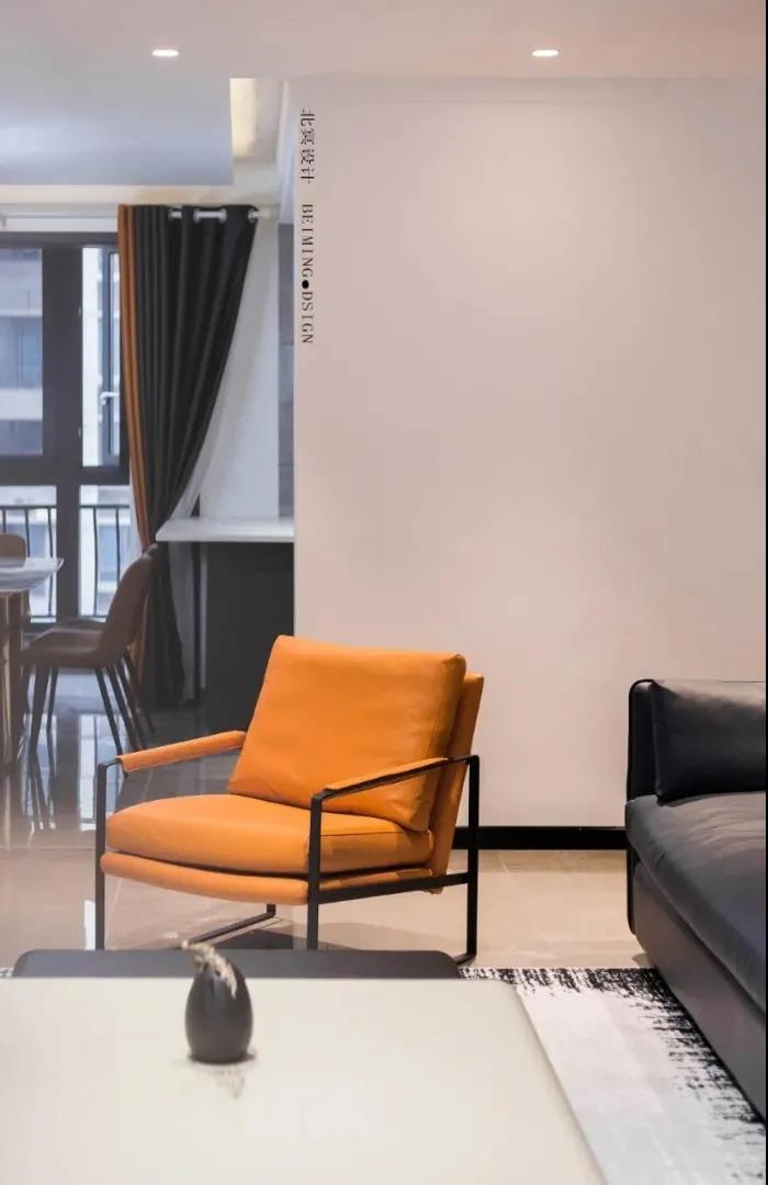 在色彩搭配方面以素色为主,地面大面积铺贴“欧文莱灰”,素雅大方,包容和谐;另以橙色等亮色进行点亮,带着淡淡的随意,让人感受到空间弥漫的温馨与舒畅。
