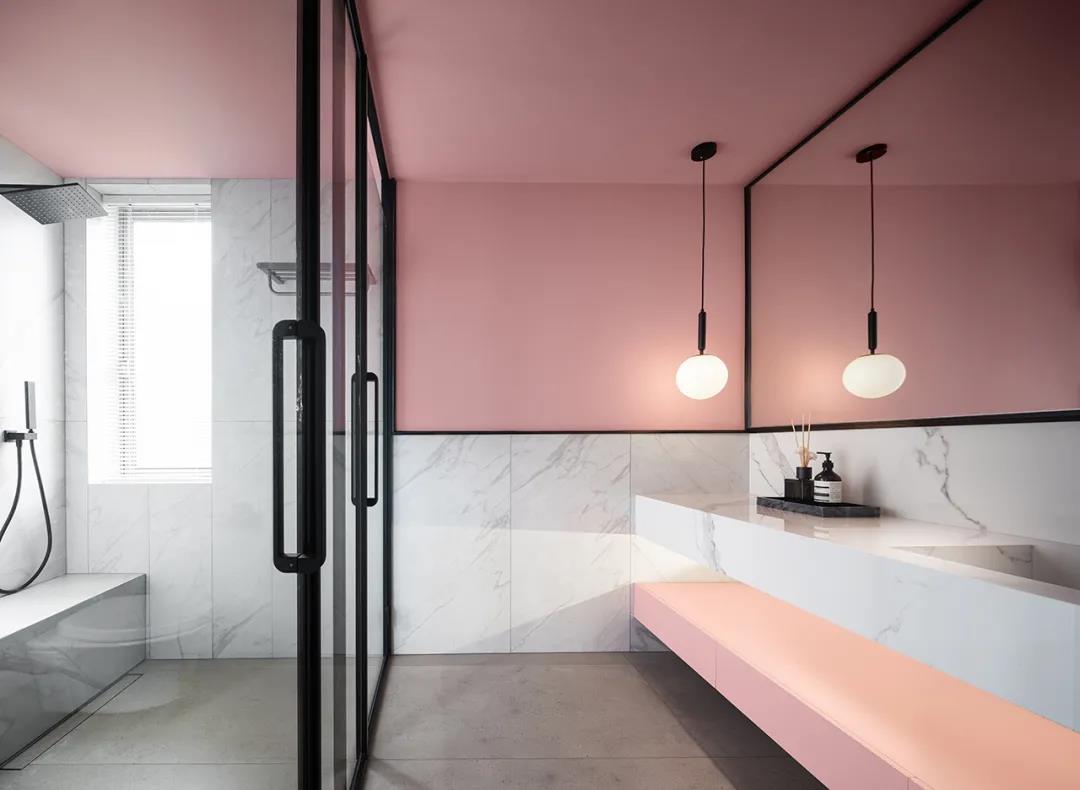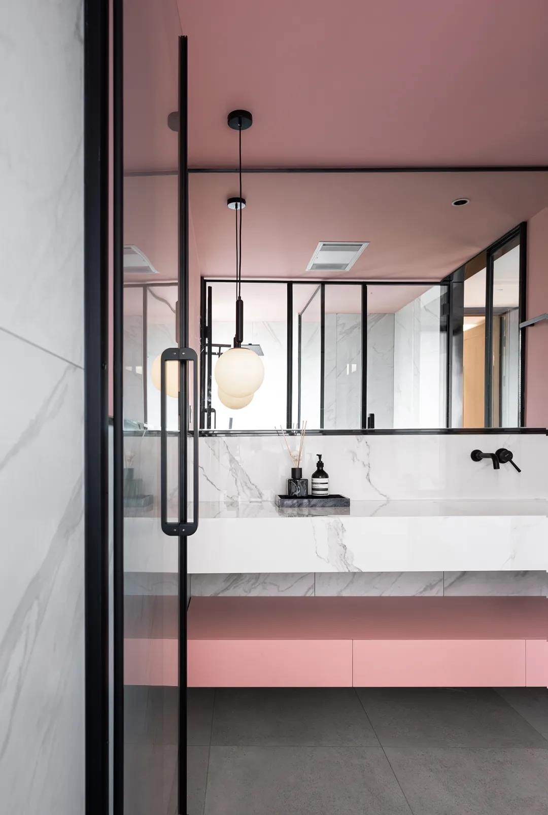 主卫运用了饱和度更低的粉色,与“卡拉拉”系列的白色相互包容,能自成一派,又分外和谐,风格柔和、内敛。