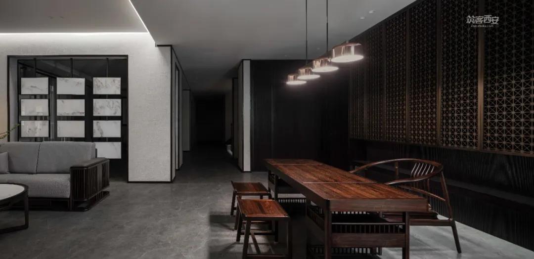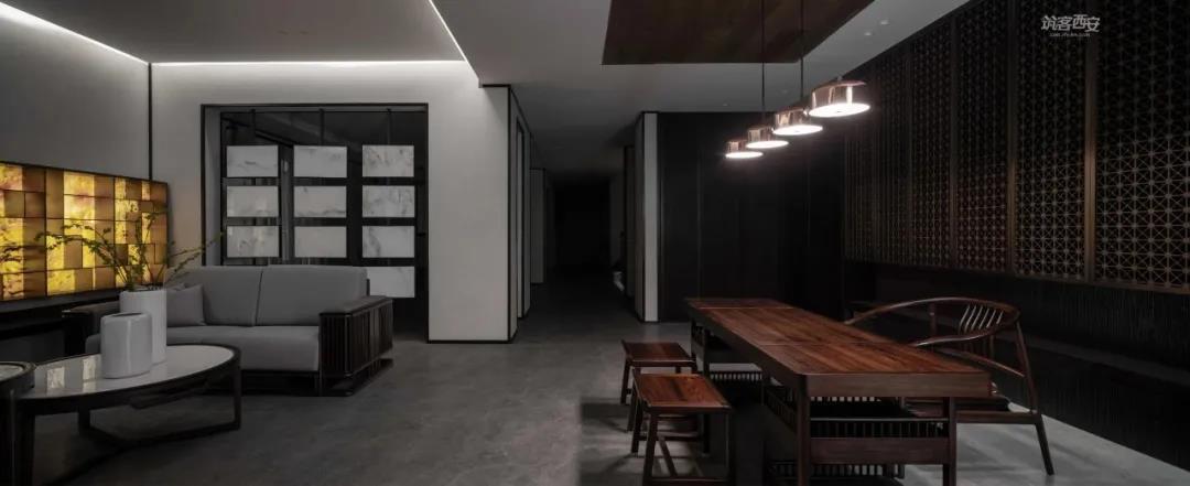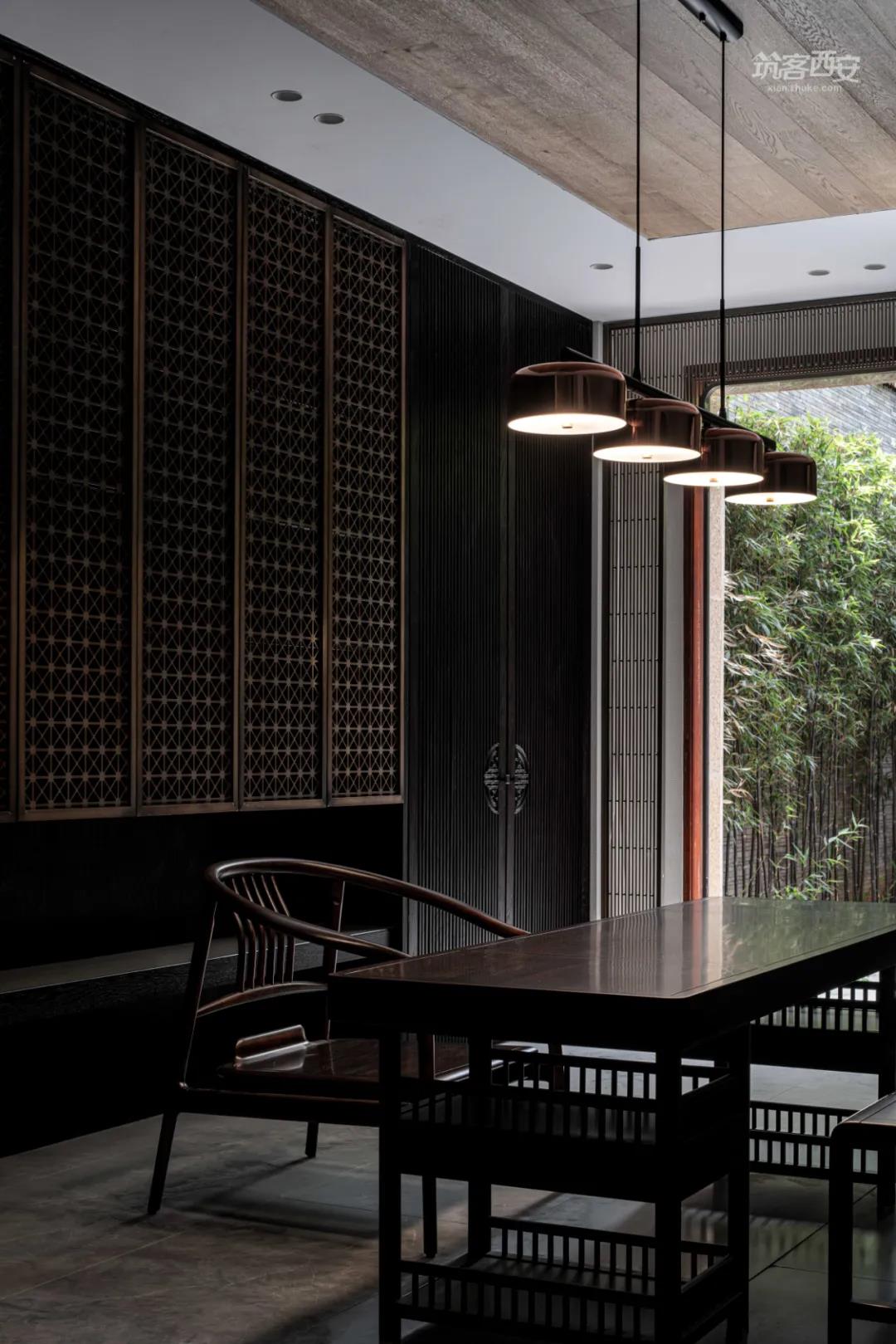 黑色格栅融合了现代审美和古典元素,成为了空间出彩的特色。