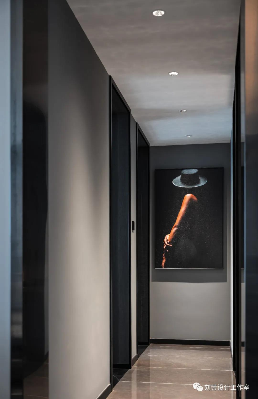在过道通往主卧的尽头选用一幅人像挂画,在灯光变化的韵律中营造格调与气质。