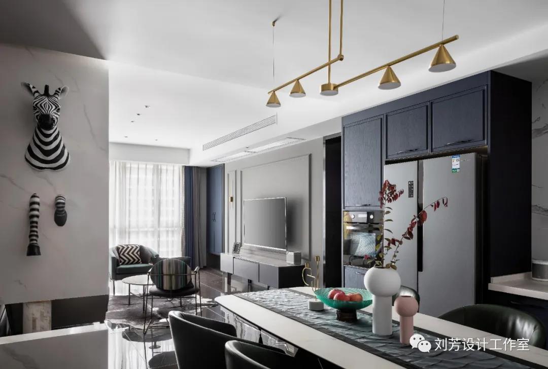藏蓝色从餐厅厨房与客厅空间,在多维度的视角里相互穿插延伸。