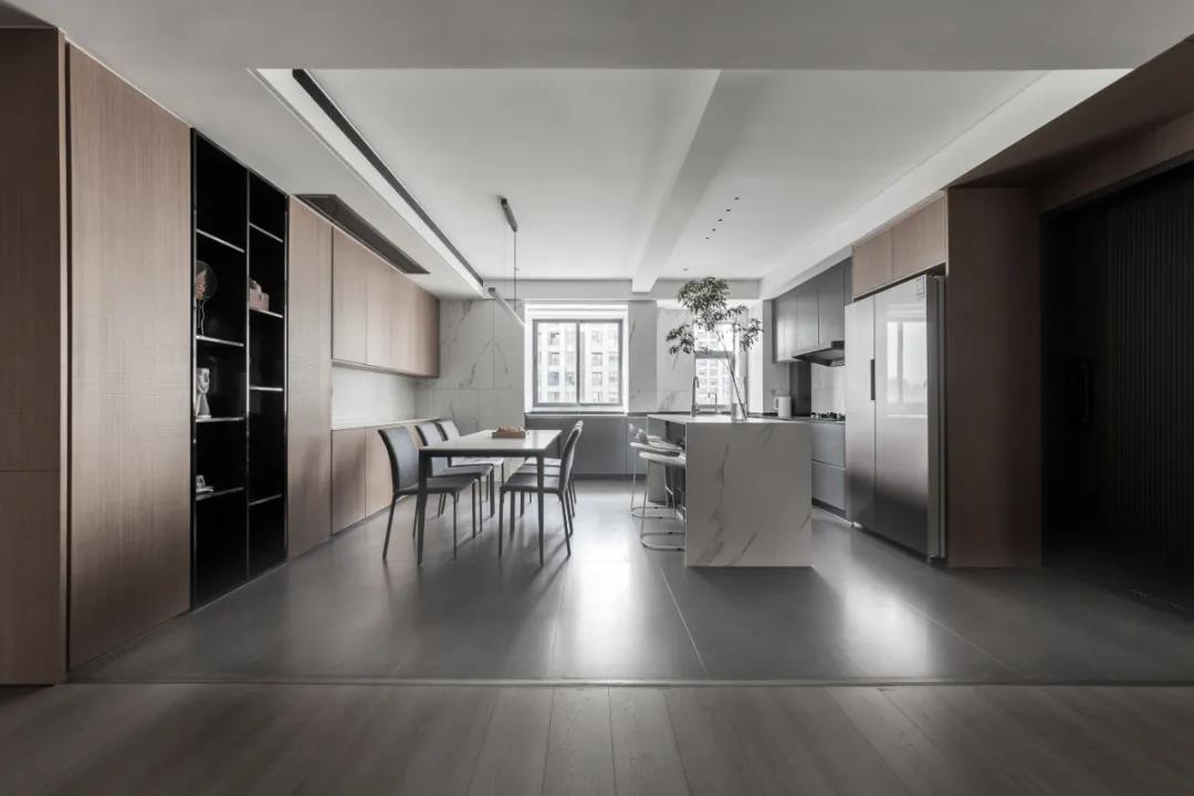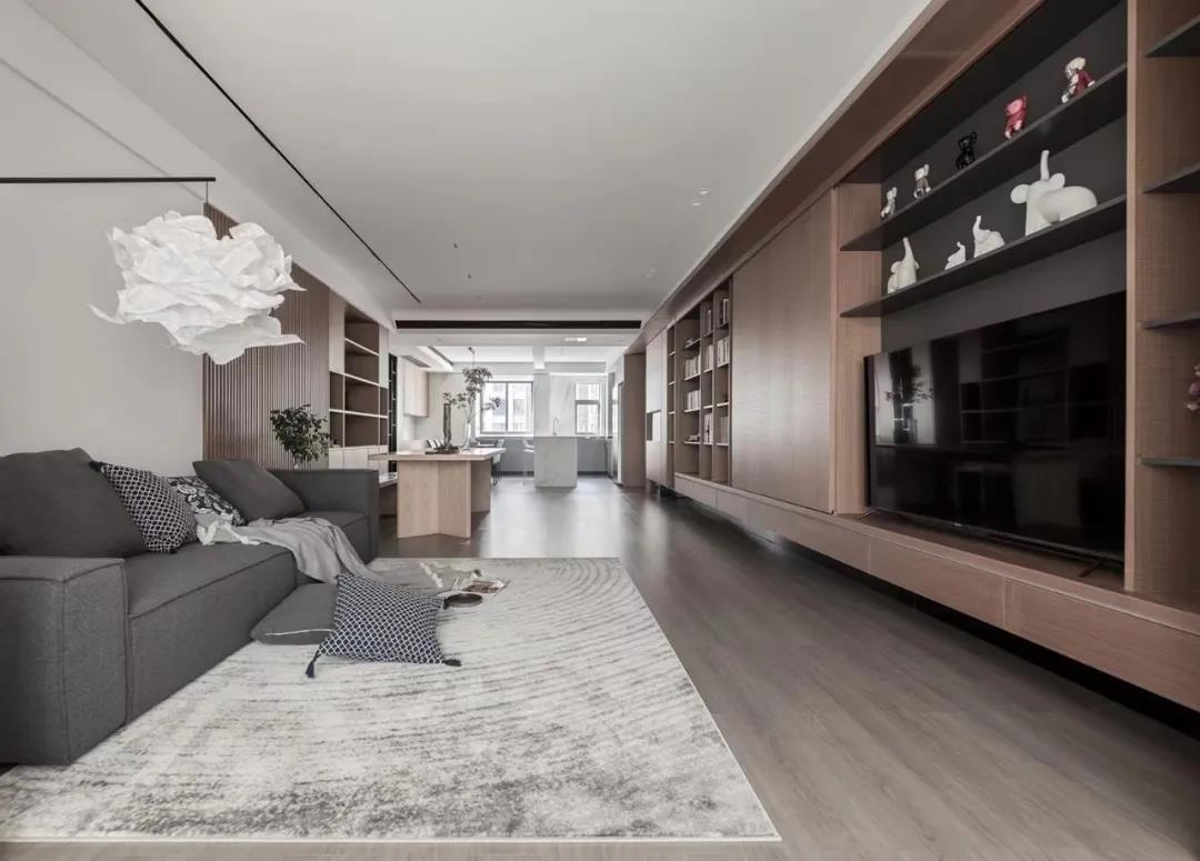 占据整面墙的定制柜体,满足业主收纳、置物的需求,同时木色增加了空间的层次感,高级简约的视觉感受,让每一天的生活充满仪式感。