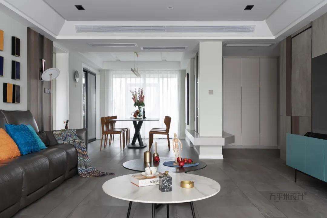 灰阶调铺陈空间基底,以撞色技巧活跃空间层次。