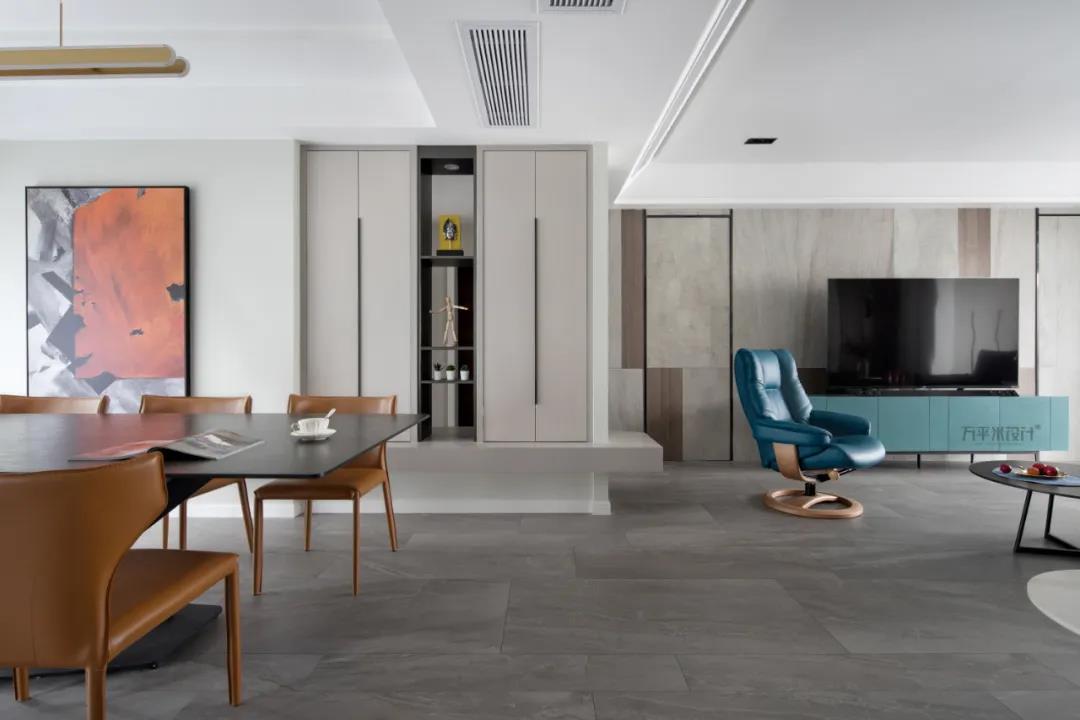 客餐厅地面皆采用了“宙斯”系列,以斯堪的纳维亚石为纹理元素,层次色泽深入浅出,传递纯粹、洗练的现代时尚感。