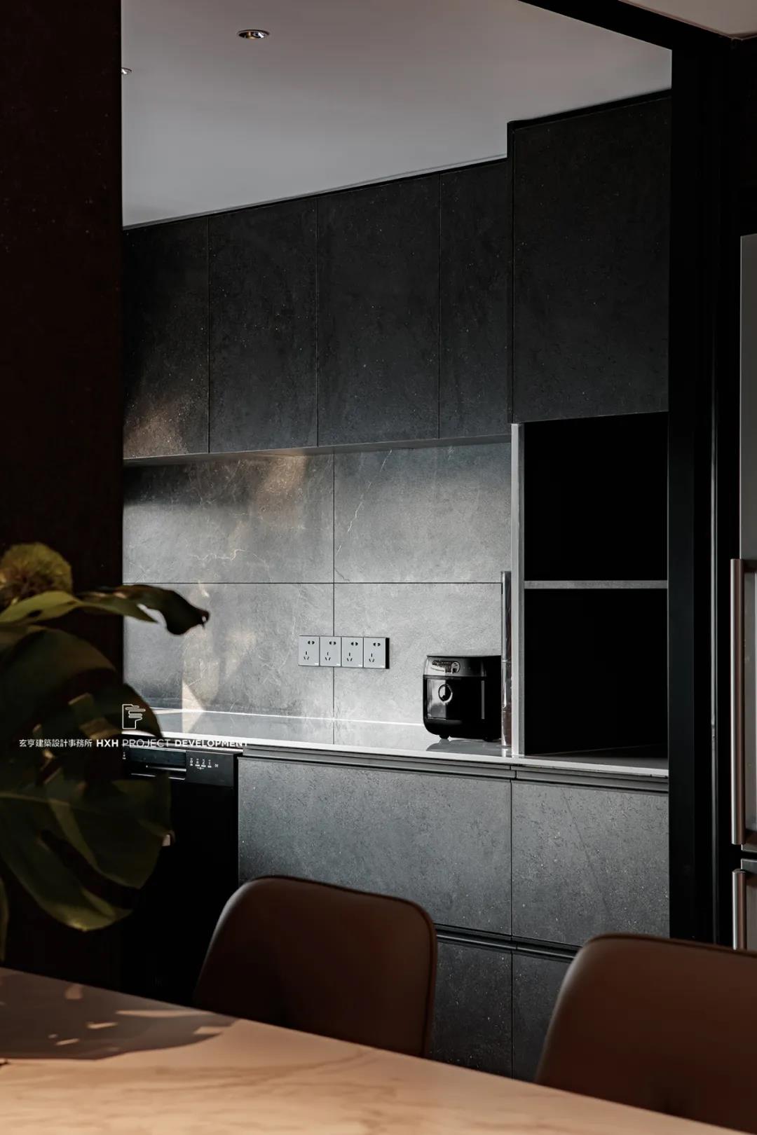 厨房区域,则是披上一层更为深邃的“量子灰”。
