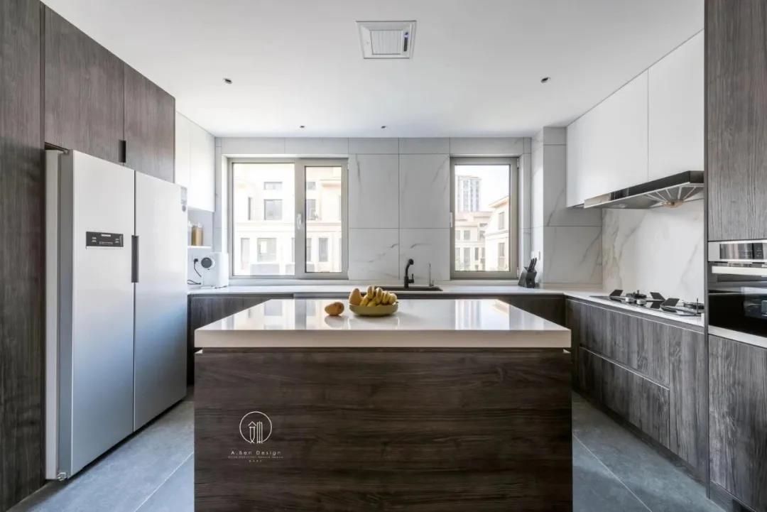厨房空间白+木色,减轻了视觉的重量感,将自然光引入室内,让下厨成为一种生活的享受,成为良好生活的一部分。