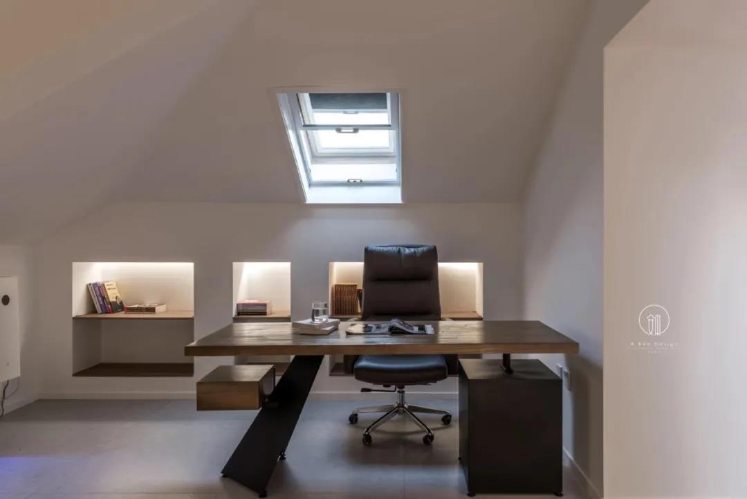 二层延续一层空间的氛围,采用较浅的素色调,无论是工作区域还是休息区域都回到最原始的需求,宁静以及放松。