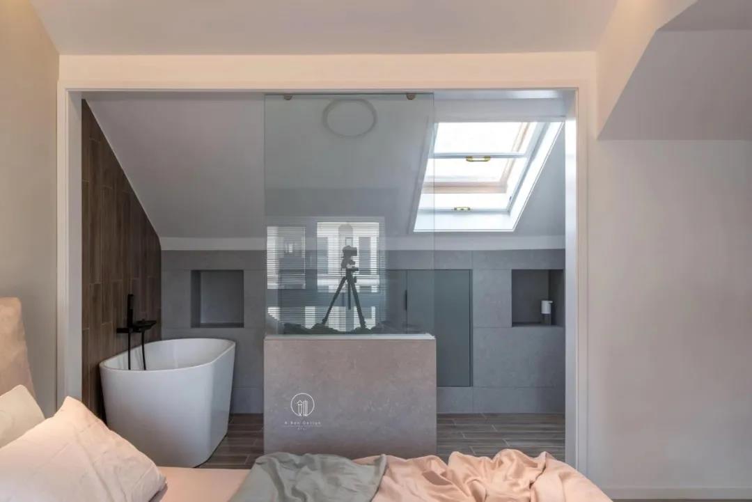 瓷砖材质上主要选用了“欧文莱·灰印象”系列,其精细质感纤毫毕现,运用在空间中,是一种很有深度的美态,远看色调纯净,近看细节无穷。