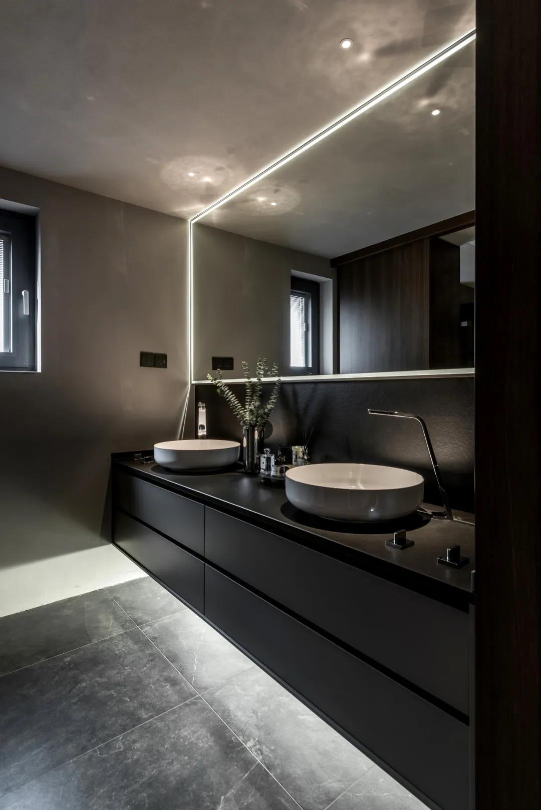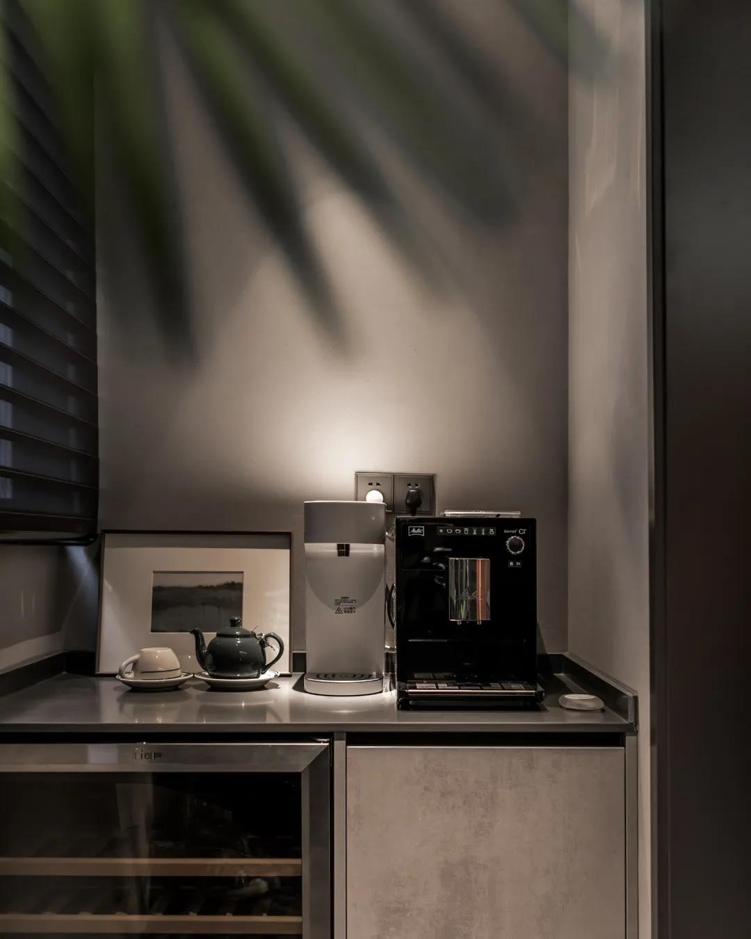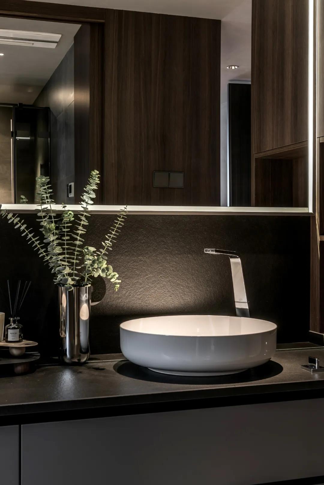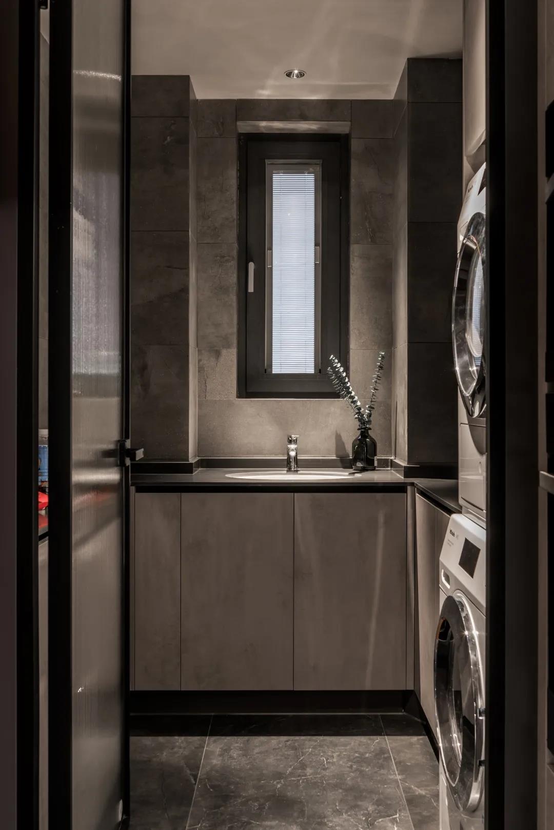 在材质选择上,地面“量子灰”系列的应用让整个空间弥漫着时尚又沉稳的气息,与其他设计恰到好处地衬托出家的高级感,营造出一个精致耐品的品质空间。