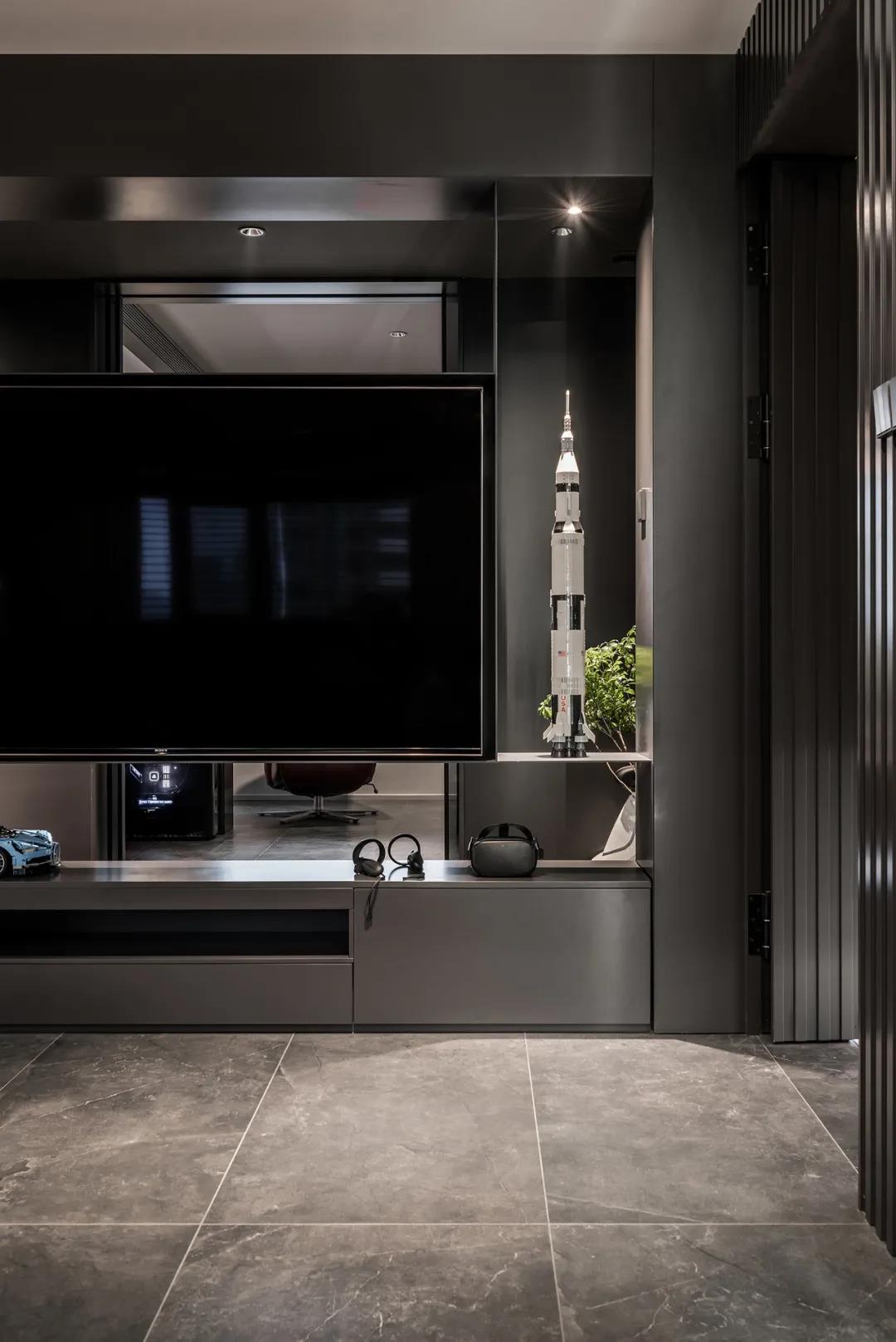 设计师表示:“本案在立项之初,我们与业主进行了详细的沟通与探讨,使得我们希望在这套案子中,打破常规思考方式,从谁居住以及所居住人员的结构组成去做前期策划,也是希望能和我们给这个项目起的主题名字《空间站》一样,让这套私宅像太空空间站一样,多模块组合,去探索神秘的宇宙。”