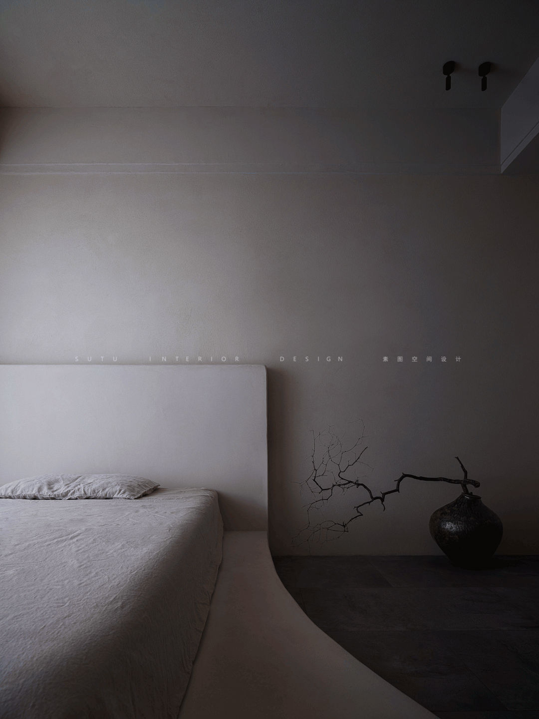 用砖搭砌的弧线形状的地台,为空间增添了几分趣味。不同形式的光照,在此空间中衬托出别样的独特韵味。