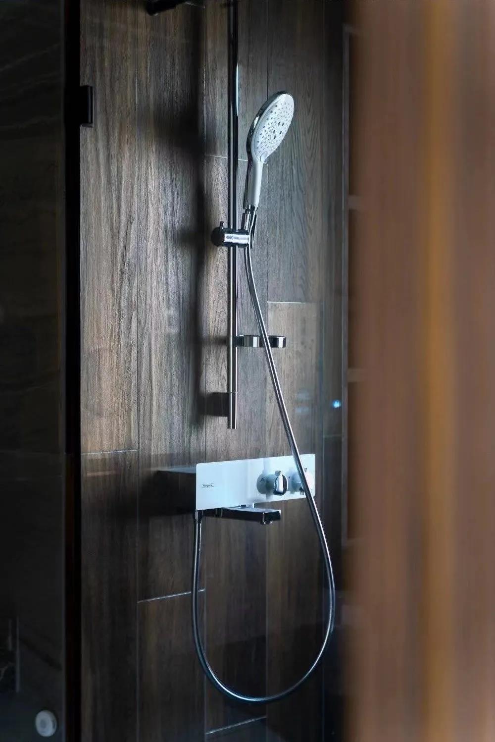 主卫中的“北美橡木”系列与“蒙特里安”系列相搭配,彰显独特的个性和尽善尽美的舒适。中性的色调给人一种放松的状态,缓解压力的同时代表优雅,木纹和石纹很好的混合在一起,构成视觉上的一个完整的美感。