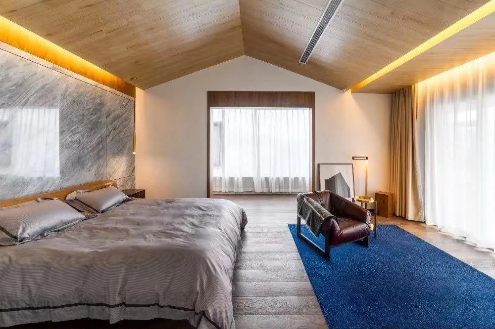 卧室材质与外部空间一脉相承,延续了整体宁静温暖的基调,自然元素的应用,塑造出轻松无压的歇息区域。