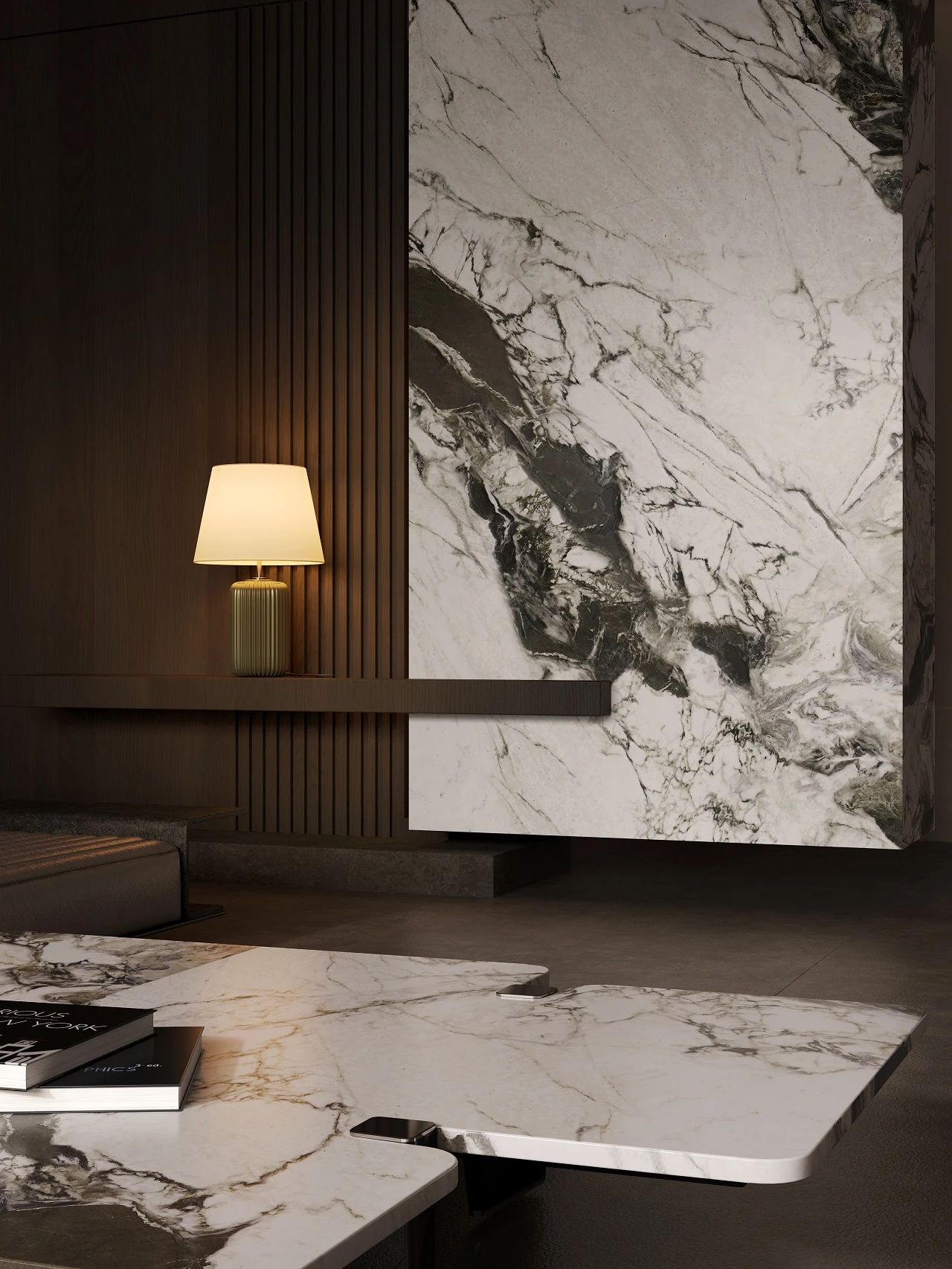 欧文莱[大地主义]主题系列设计取材于六种独立的自然材质纹理原型:飞花大理石、加勒比海岩、奥地利原石、天然洞石、绿松石、纯色大理石。