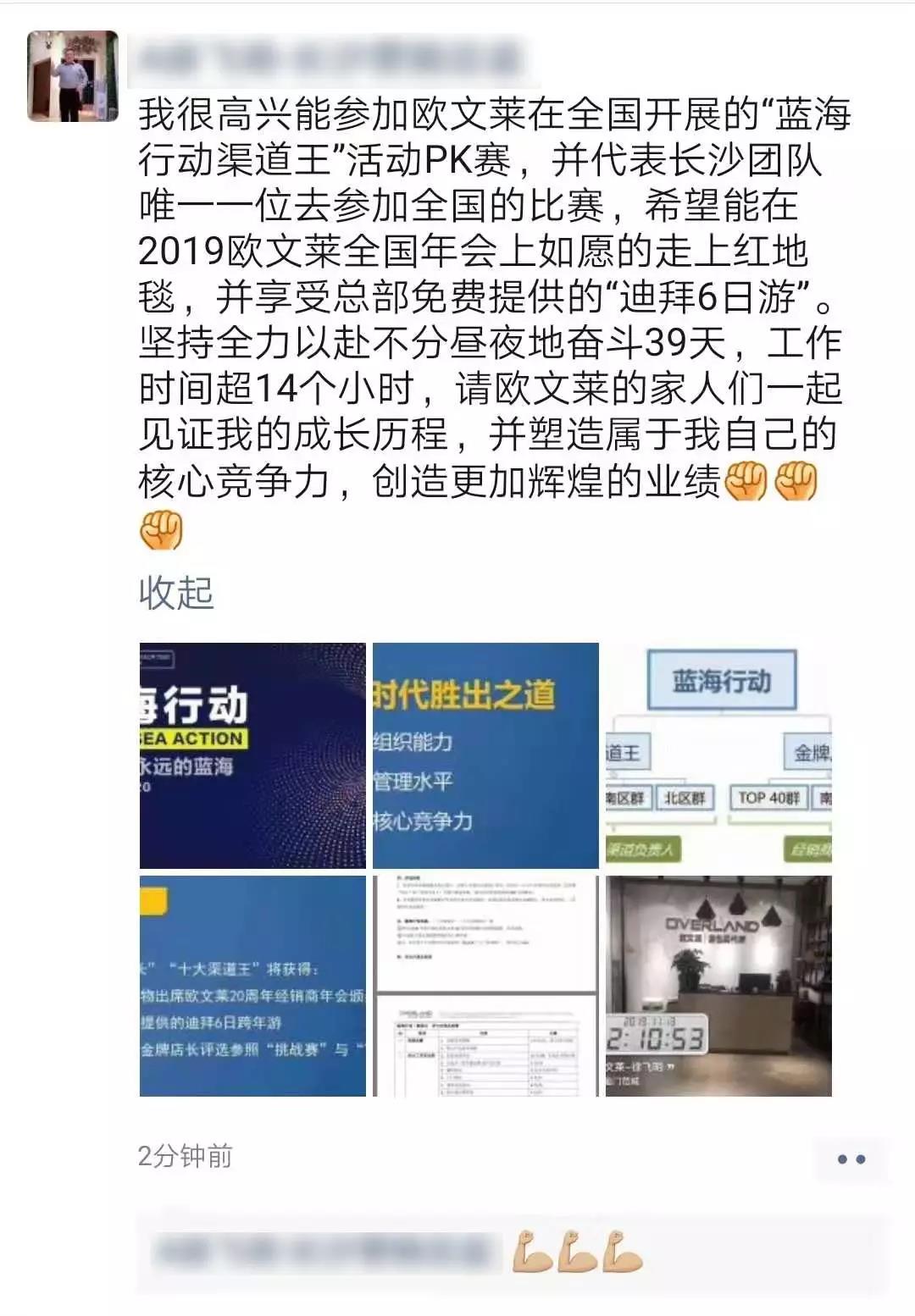 欧文莱“蓝海行动”时间共计39天,内容包含两大最核心的组织板块:“渠道王”和“金牌店长”。总部将根据“蓝海行动”的过程积分评选出年度十大渠道王以及年度的十大金牌店长。