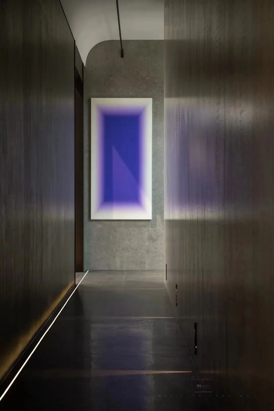 穿过走廊,“令人瞬间安静的高级灰”营造人与材质对话的氛围,不同出口解锁不同的体验环境。