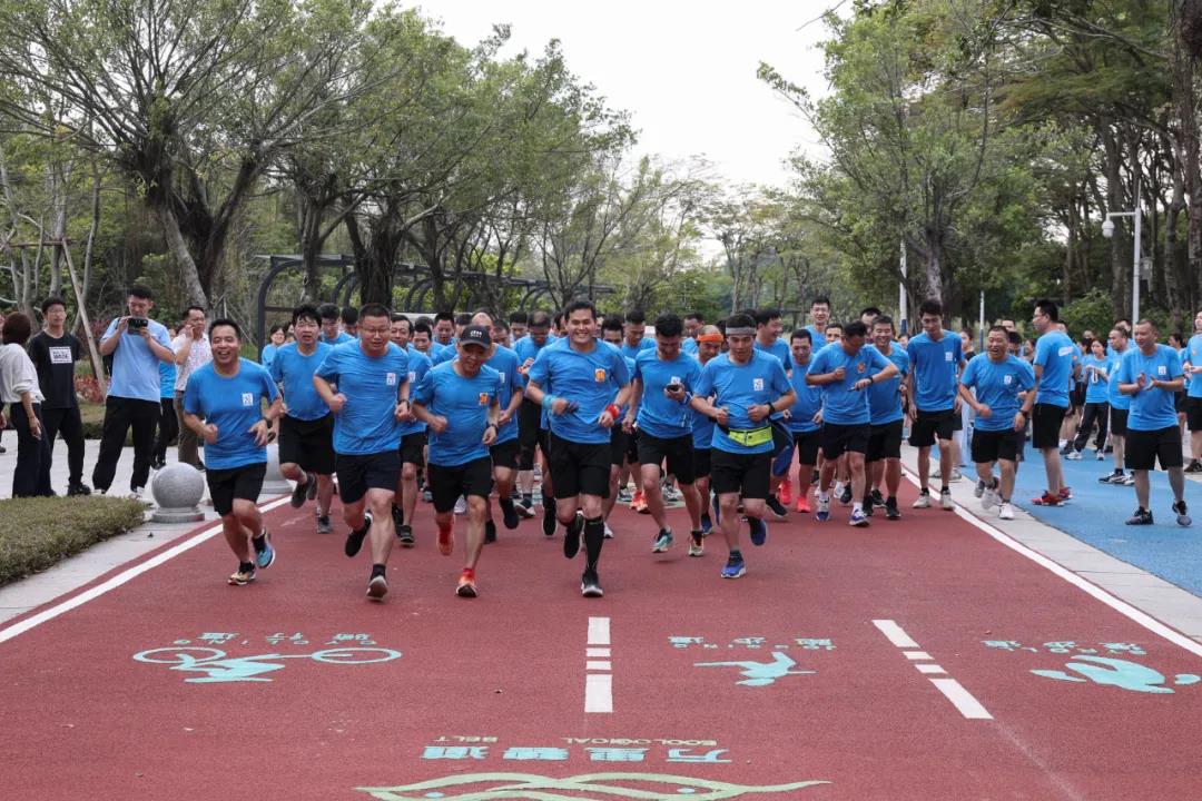 本次活动由欧文莱总裁汪加武、陶瓷研发制造中心总经理叶建明、运营中心总经理石明文、石英石研发制造中心陈志、加盟商中心总经理刘颖、工程营销中心总经理陈立伟、岩板营销中心总经理邓绍清、品牌营销中心总经理梁雪青等欧文莱决策骨干进行带队,运营中心、营销中心、生产中心等不同组织板块近150位欧文莱健儿热情参与。 装备齐全,蓄势待发,所有参赛者的脸上写满雀跃,已做好了战胜这场耐力角逐的身心准备。