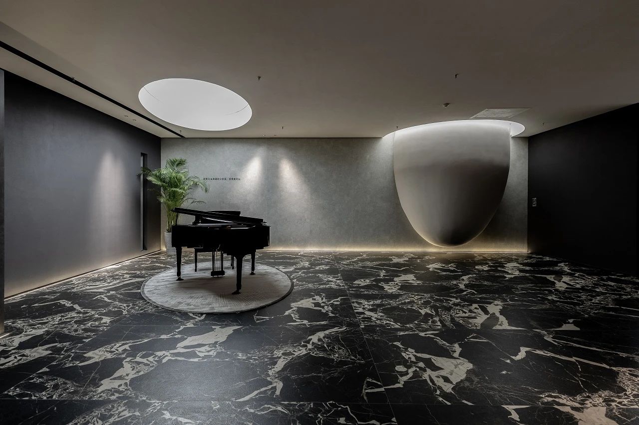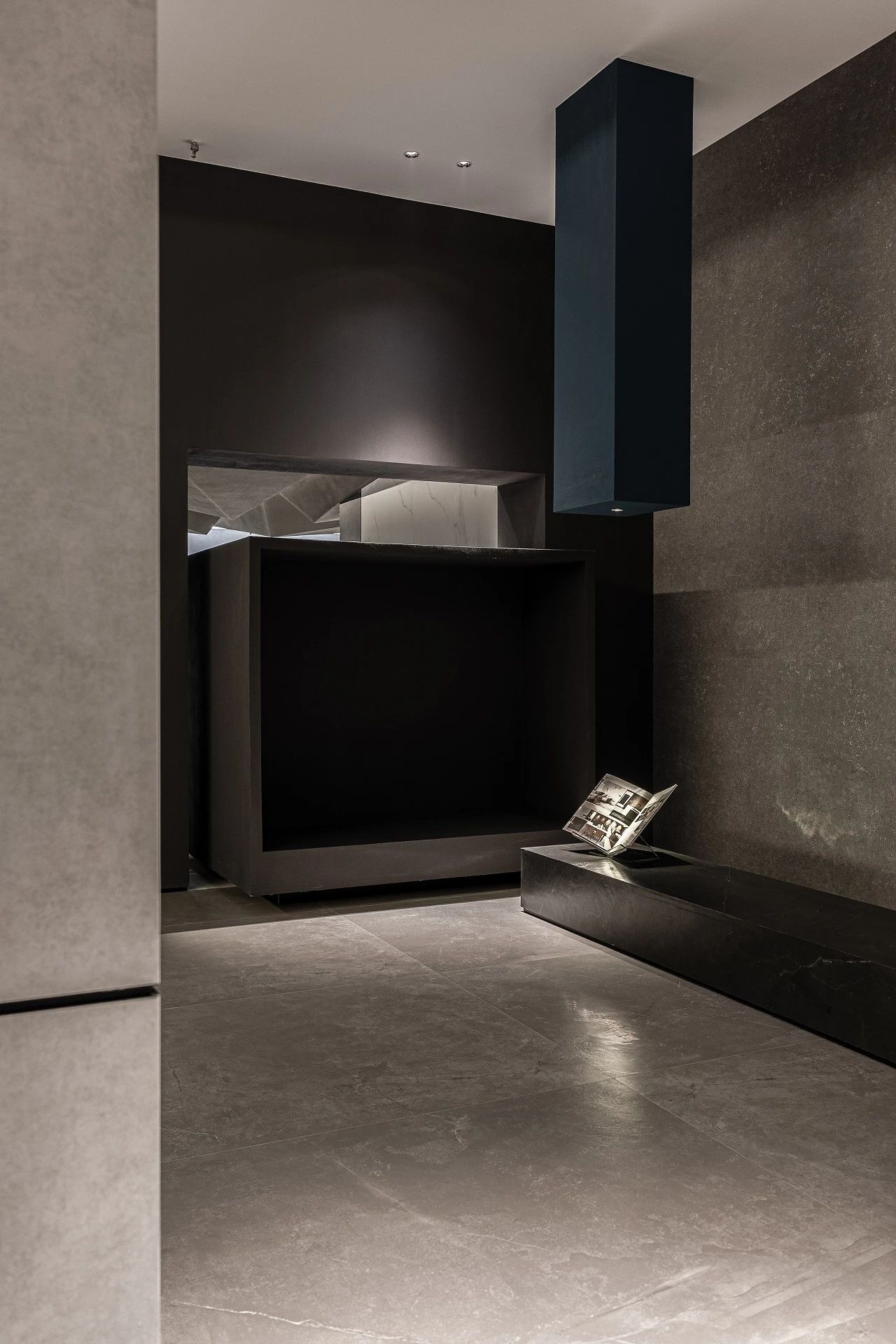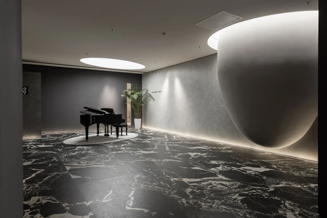 艺术审美的高级感,来自于作品与人的情感共振。无需太繁琐,不宜碎片化应用,选择大规格岩板模块化布局空间,具备强烈的视觉美学冲击力,为高端客户带来了良好的情绪价值。