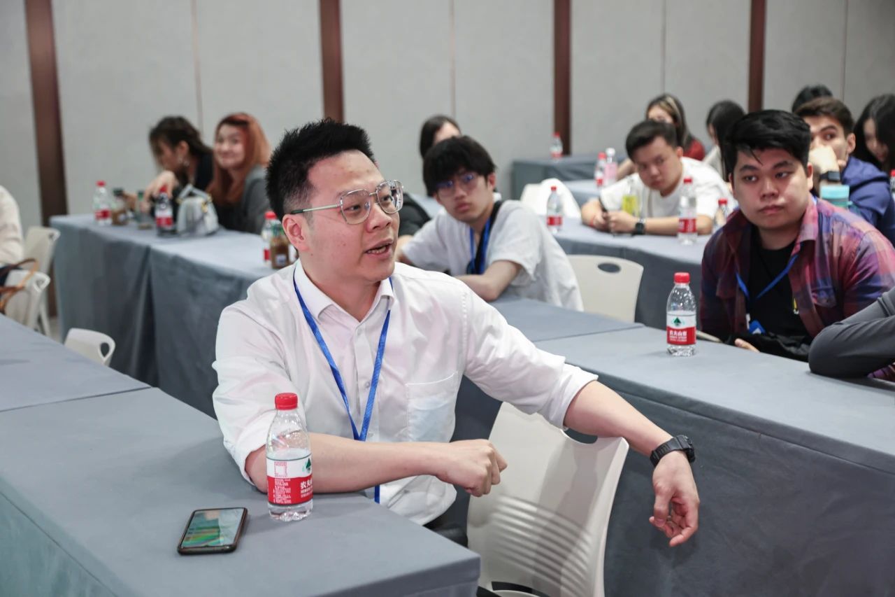 △ 欧文莱国际营销中心副总经理何祥杰针对学生提问,作国际战略方向的交流讲解