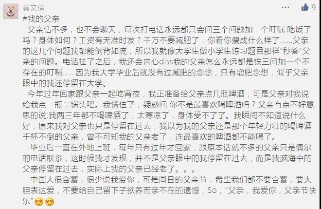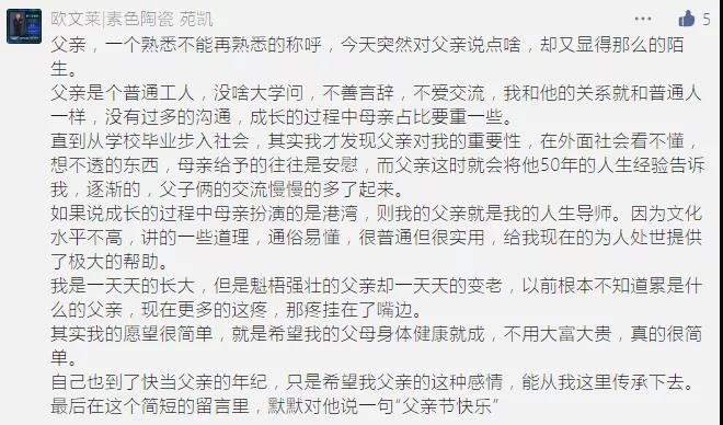 端午节没能团圆,不过还好有网络联系,彼此之间能够通过视频电话,互相送去温暖。昨天和他通话听说最近工作挺累的,又是做社区核酸,又是接种疫苗,听的我很心疼,端午节我和妈妈提前包了他最爱的粽子用顺丰给他寄了一些过去。父亲节又快到了,也不知送他什么礼物好,只希望他能平平安安顺利完成工作就好。最后借欧文莱这个平台祝愿所有父亲节日快乐,生活高高兴兴的,出入平平安安的,也和辛苦付出的老爸说:辛苦了,我和妈妈爱你,等你早日平安归来。