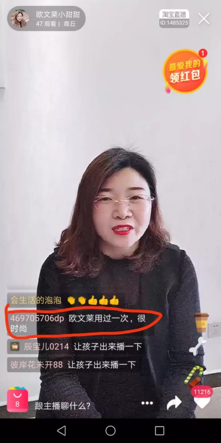 △ 欧文莱商丘店直播间,产品得到了客户的认可。