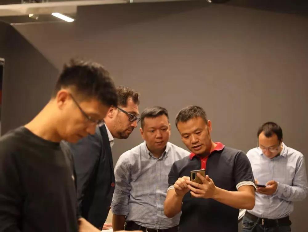 今天下午,欧文莱执行总裁汪加武(右二)一行在意大利产品设计公司交流考察。