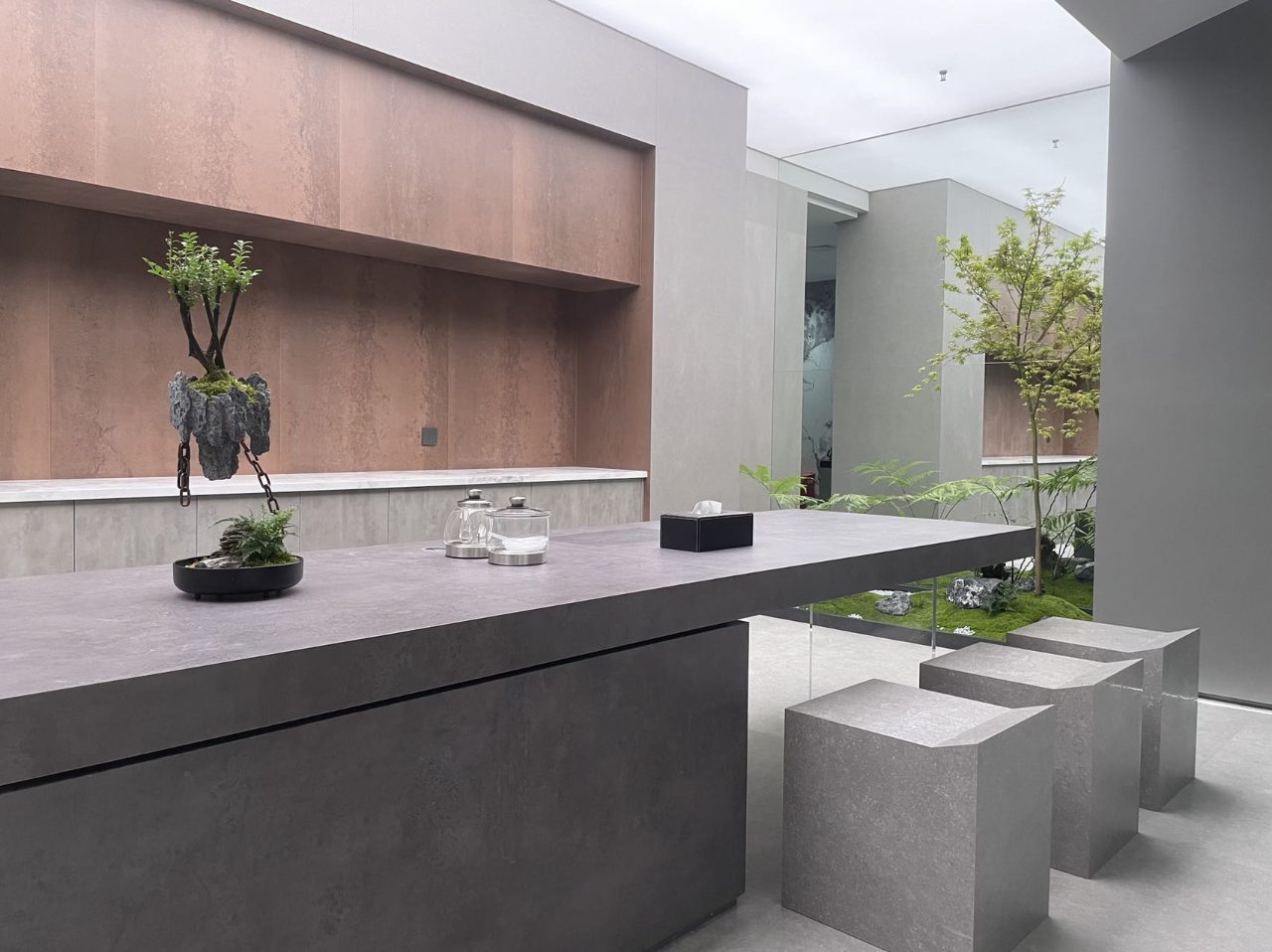 另外,苏州也是瓷砖行业内卷特别严重的城市。整个3000㎡欧文莱体验店空间是从品牌调性塑造开始,中间是产品选择,再到真实的体验,最后是情感上的沟通链接,能让客户有一个沉浸式的体验,是一个完整的闭环。全岩板打造,以一个对消费者有吸引力的店面形象,让欧文莱品牌能被快速识别、记忆;大店的虹吸效应,产生了更多主动合作的设计师。