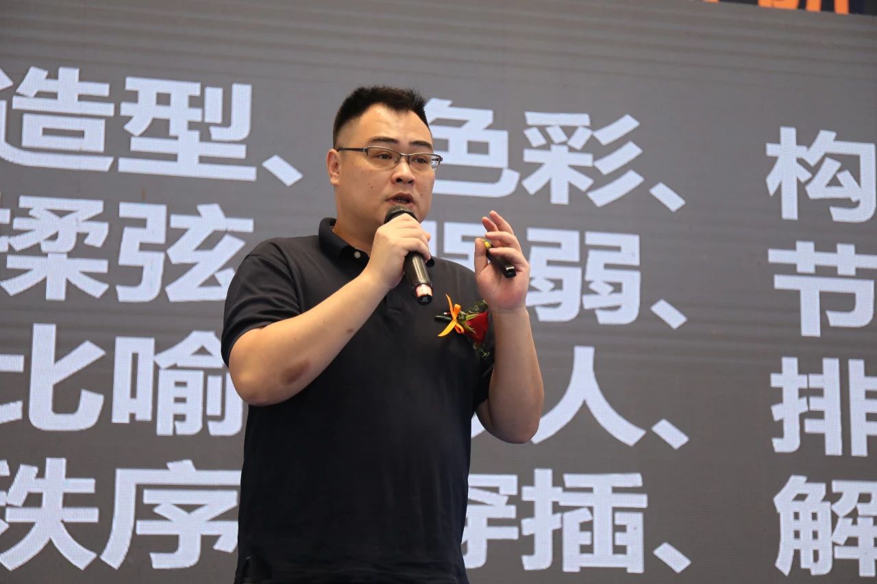 ▽ 欧文莱加盟商中心中区负责人林毅介绍欧文莱品牌渠道新动态,邀请设计菁英了解、参与BDA包豪斯现代设计奖评选活动