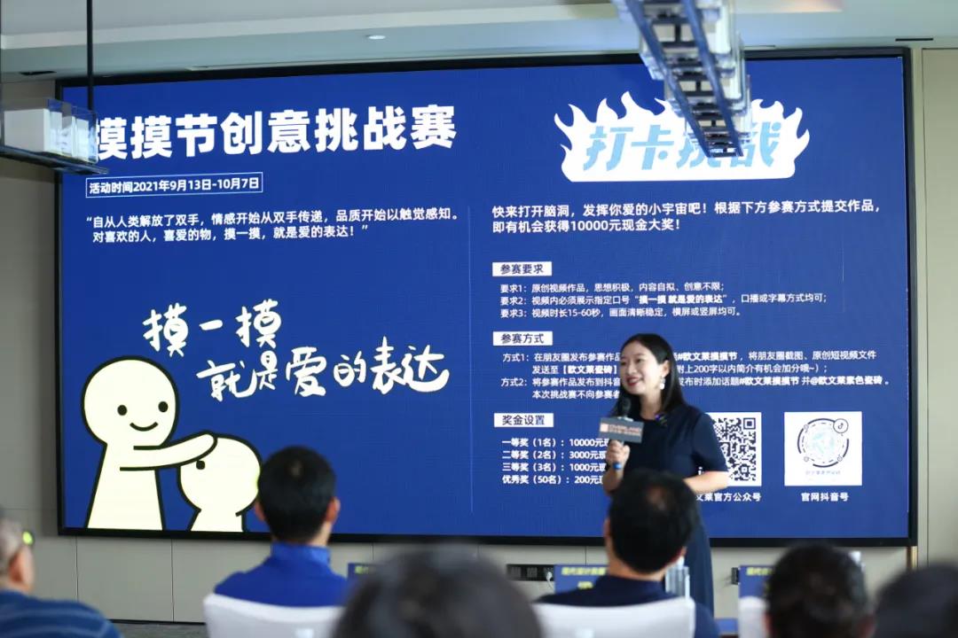 欧文莱品牌营销中心策划总监文映人讲解“摸摸节创意挑战赛”