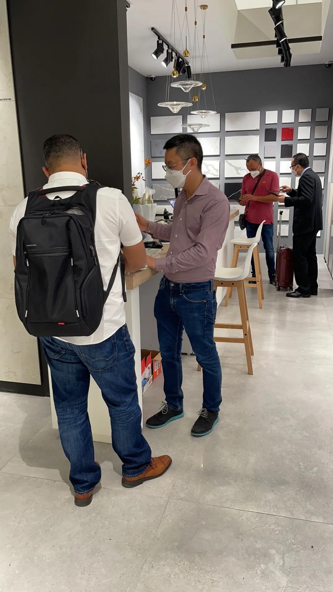 △ 董事长同步在中国营销总部线上坐镇指挥 引用一下欧文莱团队接受采访时的原话:“你看见欧文莱总会把一件事情做得很成功,但你不会知道它为什么成功?比如当下的博洛尼亚展,通常你看到的只是欧文莱的强大前场,但如果你转到后方看看就会明白:欧文莱的打法就是一个立体系统,是有前场、中场和后场的,这都是你从来看不见的地方”。确实,欧文莱此番运营操作可圈可点,可以说一切成功都不是随随便便得来的,必须有非常周详的铺排与执行力,才能实现参展效果最大化。 明确就是以成交为参展目的 欧文莱一直以来对外释放的观点态度都很明确:参展博洛尼亚绝不是花架子,不是单纯的秀肌肉,一切营销动作必定是以销售为目的。——从参展效果而言,欧文莱确实达到了他们所设定的预期。