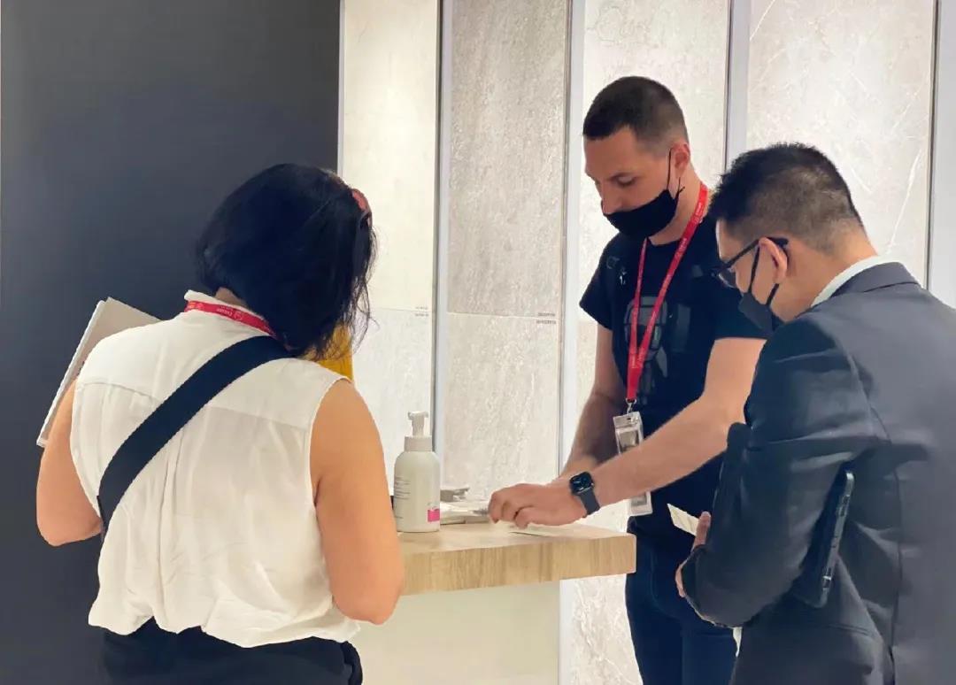 欧文莱在全球市场都拥有非常庞大的老客户群体,疫情两年阔别多时,许多老客户赶到展会现场感受新品的期待比以往更浓烈,也“幸好没有令人失望”。而有诸多新客户表示,“好看,舒服,无论是表面纹理还是产品质感,都是我所喜欢和需要的。” 产品敢与欧洲品牌同场PK才是真正的国际化 到博洛尼亚拿订单,欧文莱最终成绩如何?这个尚未能下定论。但在这个国际平台上说出“为成交”的话,却需要一定底气。欧文莱品牌营销中心总经理梁雪青曾在受访时提到:“中国陶瓷企业进入博洛尼亚展的关键,核心依旧是产品本身,包括原创设计以及工艺技术,而这些也是中国品牌的产品立足欧洲高端市场或国际市场的关键。能够进入博洛尼亚展的企业,也意味着品牌调性和产品设计在一定程度上,与欧洲高端市场或国际市场的主流审美高度匹配。”