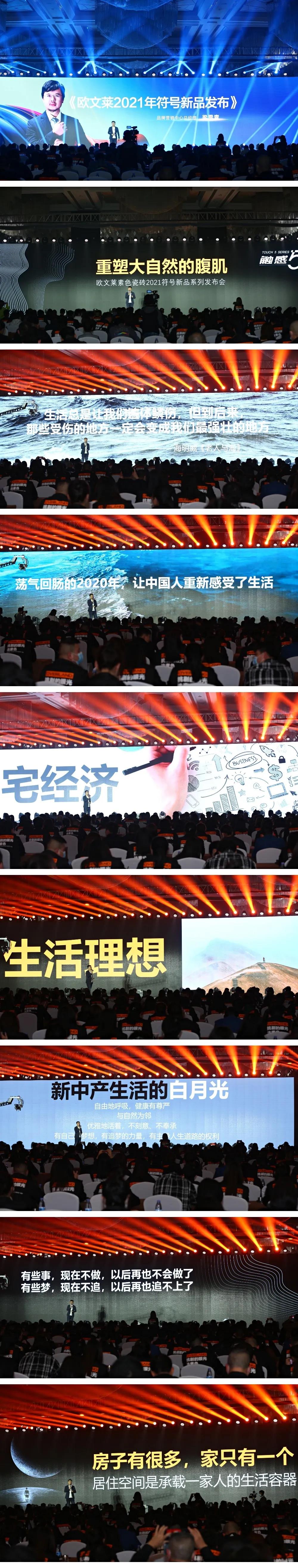 没有“订货会”,亦没有明星助阵; 欧文莱的新品发布, 通过温情而有力量的故事,打动人心。 幻灯片一页一页闪过——何为生活理想, 何以为家,设计以何为美,以何触动人心…… 在画面接连闪过的一瞬,似乎找到了答案: “热爱生活的人,会有一百种理由爱上欧文莱”; 瓷砖,虽然不能如衣食住行般如此贴近生活, 但它却能陪伴我们走过每一段不平凡的人生。   何为美好生活?用欧文莱就对了! 欧文莱 2021年度迭代符号新品发布会 演讲内容精选 ▶▶▶