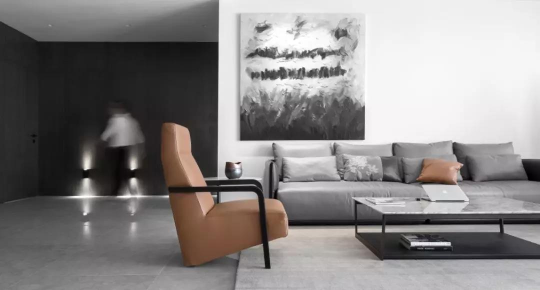整体以最为低调的黑白灰三色为主,营造质感空间。设计重笔在“灰”,含而不露,平衡着黑白界限分明的强烈对比。局部使用暖色系的大地黄,在灰盒子中渗透着温度。强调空间的功能性,反对多余装饰。对色彩、材料的质感高要求。满足业主对生活品位和身体健康的需求,摆脱繁琐、复杂、追求简单和自然的心理,让整个家清新自然,干净舒适。