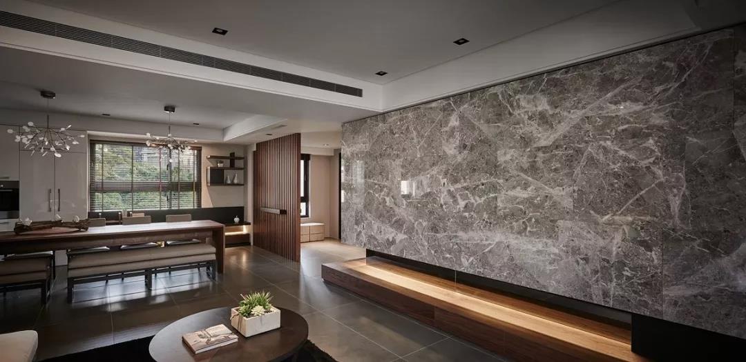 生活绝不是简单的复制黏贴,屋主对于生活有着自己的一份坚持,要精致优雅又要保持特立独行。“密图”系列的应用,使空间中具有出色的空间延伸感,营造出宽敞的空间感受,冷灰调性,浅纹痕迹,凸显时尚、前卫的气质。