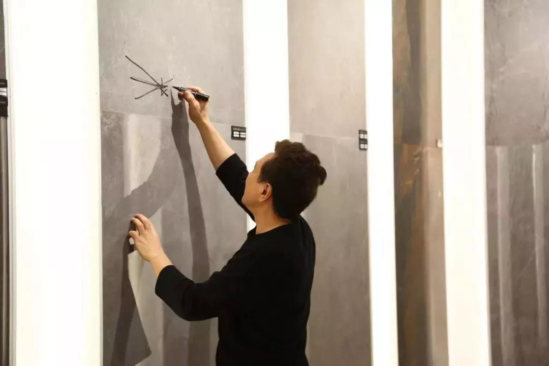 △ 在“现代力量2019世界设计尖峰会”前夕,张清平曾亲临欧文莱素色现代馆进行参观,率先感受新版展厅设计及2019全系列新品。在没有任何提示下,张清平选择在“量子灰”上留下专属“痕迹”。