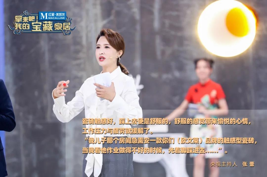 ▽ 现场还有主持人张蕾小姐姐,也是美貌与智慧并重。舒缓压力,需要一款欧文莱的触感型瓷砖。