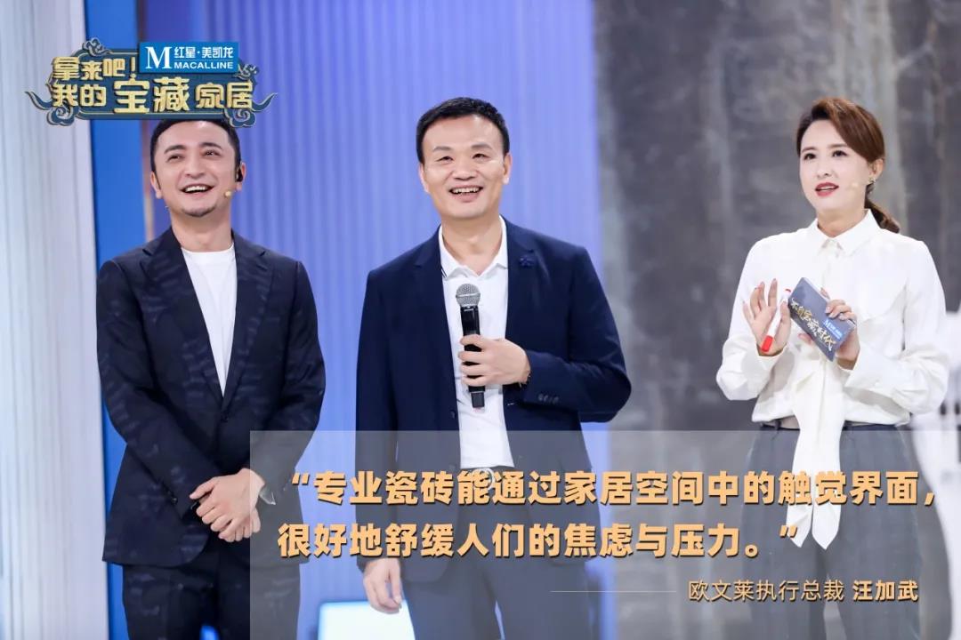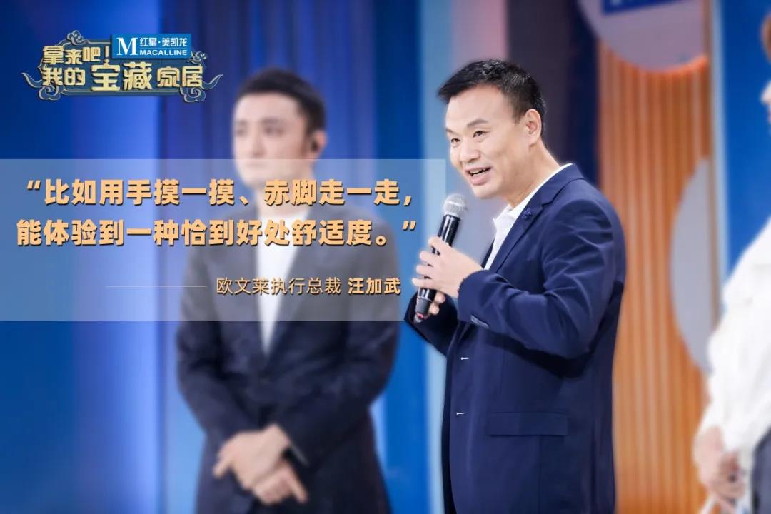 欧文莱执行总裁汪加武亲自上阵,携手红星美凯龙跨界央视国家宝藏,分享现代宝藏家居,带来宝藏家居必不可少的优质瓷砖产品,现场金句频出。